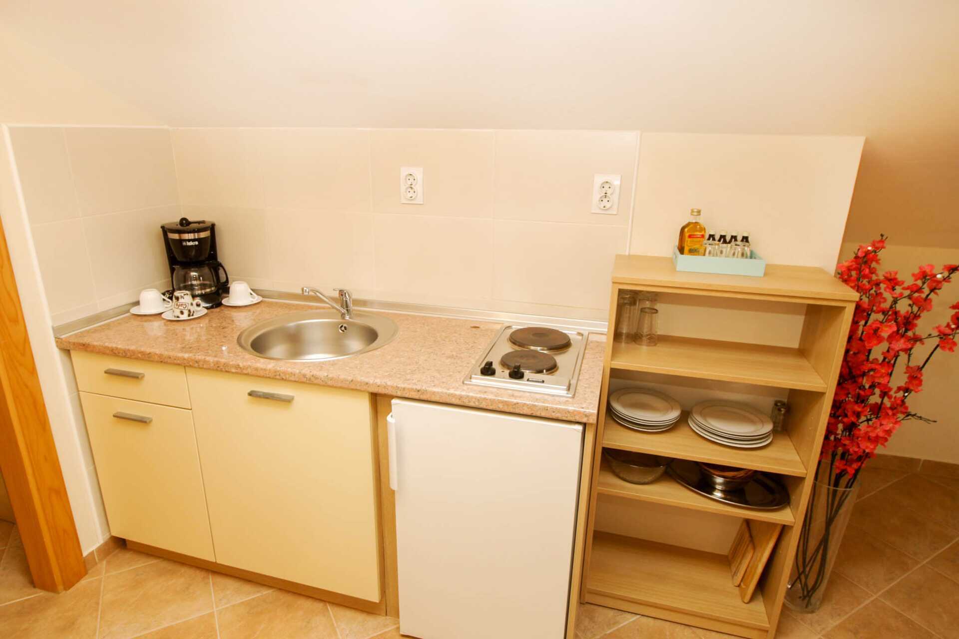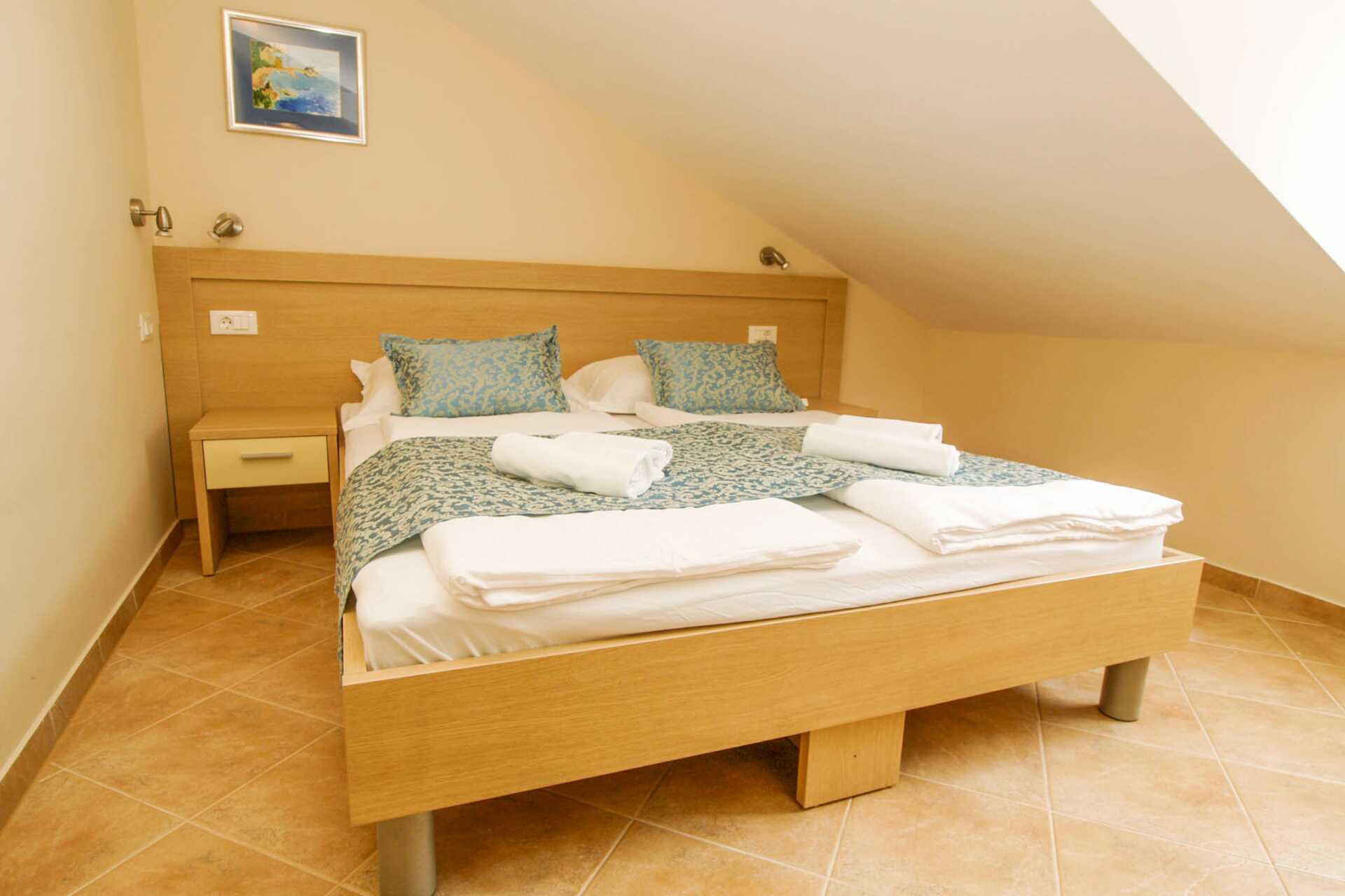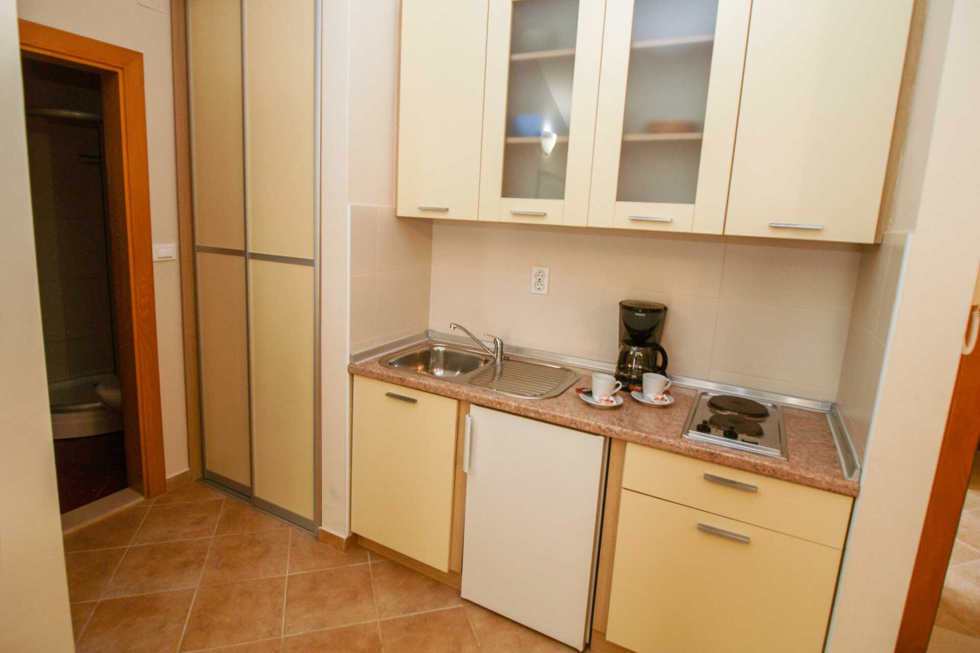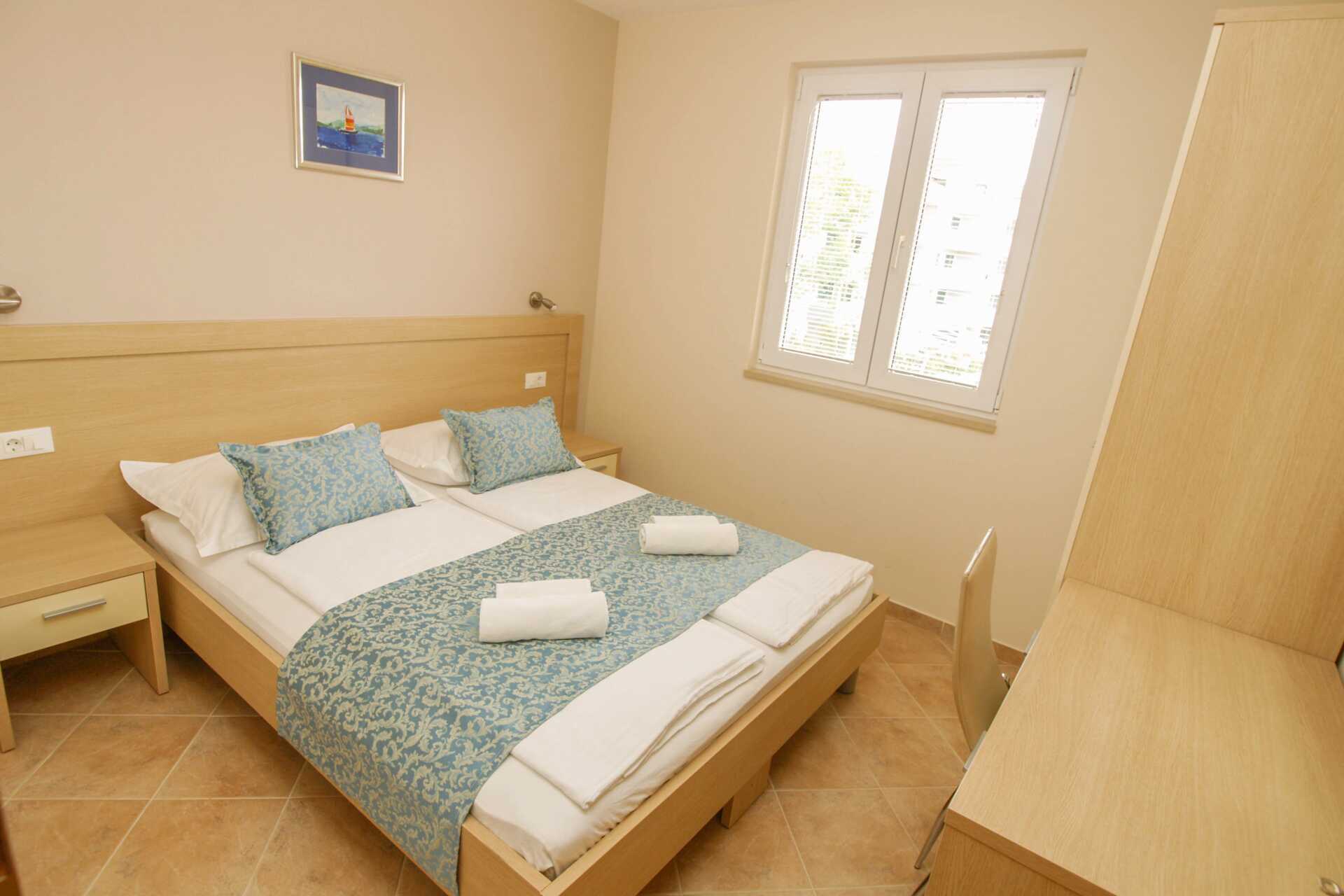 Tvårumslägenhet med balkong, vissa med begränsad havsutsikt. Sovrum och vardagsrum kombinerat med minikök. Några lägenheter som ligger på översta våningen har snedtak. En dubbelsäng eller två enkelsängar. Möjlighet till extrabäddar i en bäddsoffa. Minikök med kokplattor, kylskåp, vattenkokare, kaffebryggare samt enkel köksutrustning. Wifi, luftkonditionering och deponering ingår. Tv med internationella kanaler. Hårtork. Badrum med dusch samt wc. Städning 6 ggr/vecka.