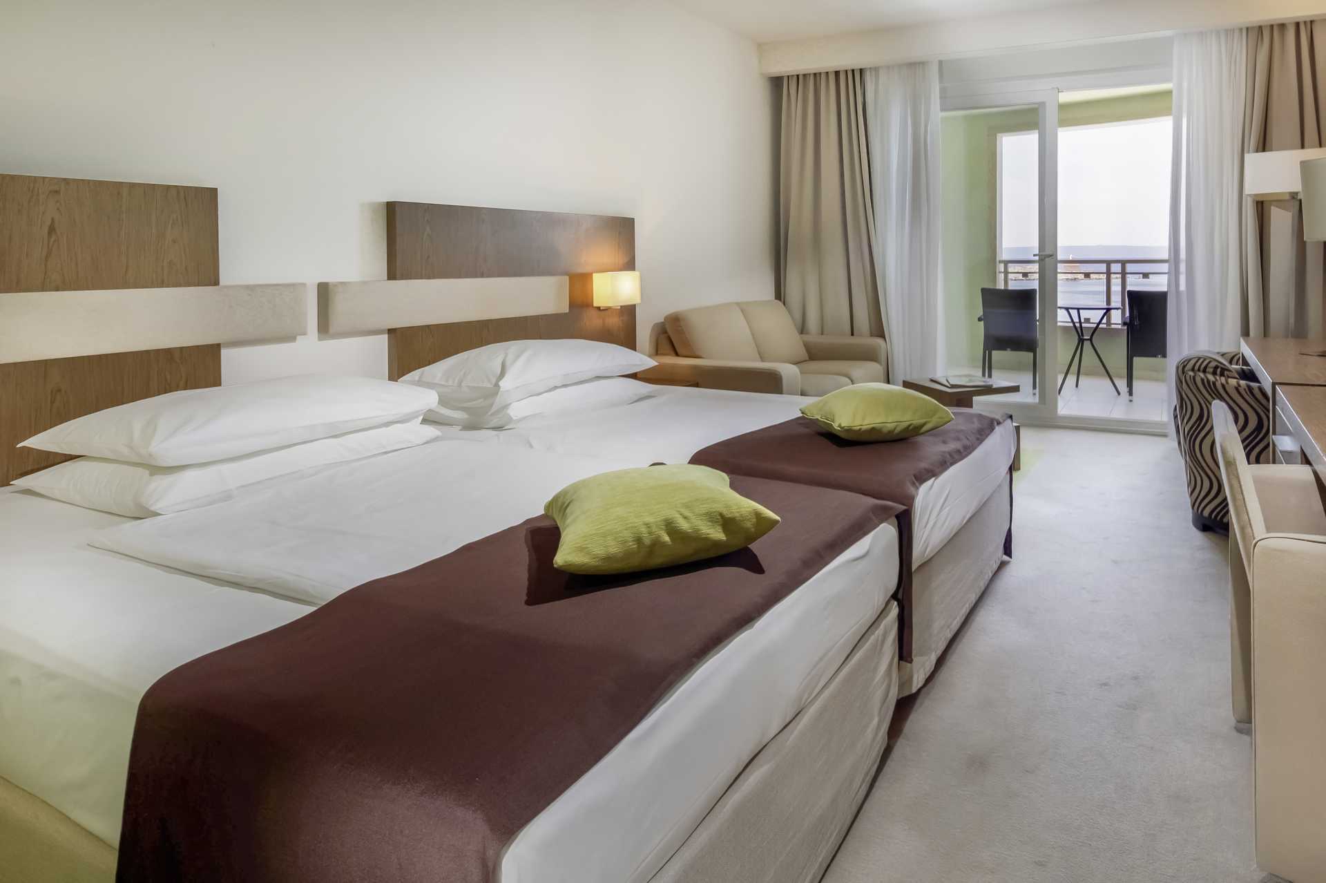 Dubbelrum med balkong, vissa med havsutsikt. En dubbelsäng. Möjlighet till extrabädd i bäddsoffa. Wifi, luftkonditionering och deponering ingår. Vattenkokare samt kaffe och te. Minibar. Tv med internationella kanaler. Heltäckningsmatta. Hårtork. Badkar med dusch och wc. Städning 7 ggr/vecka.