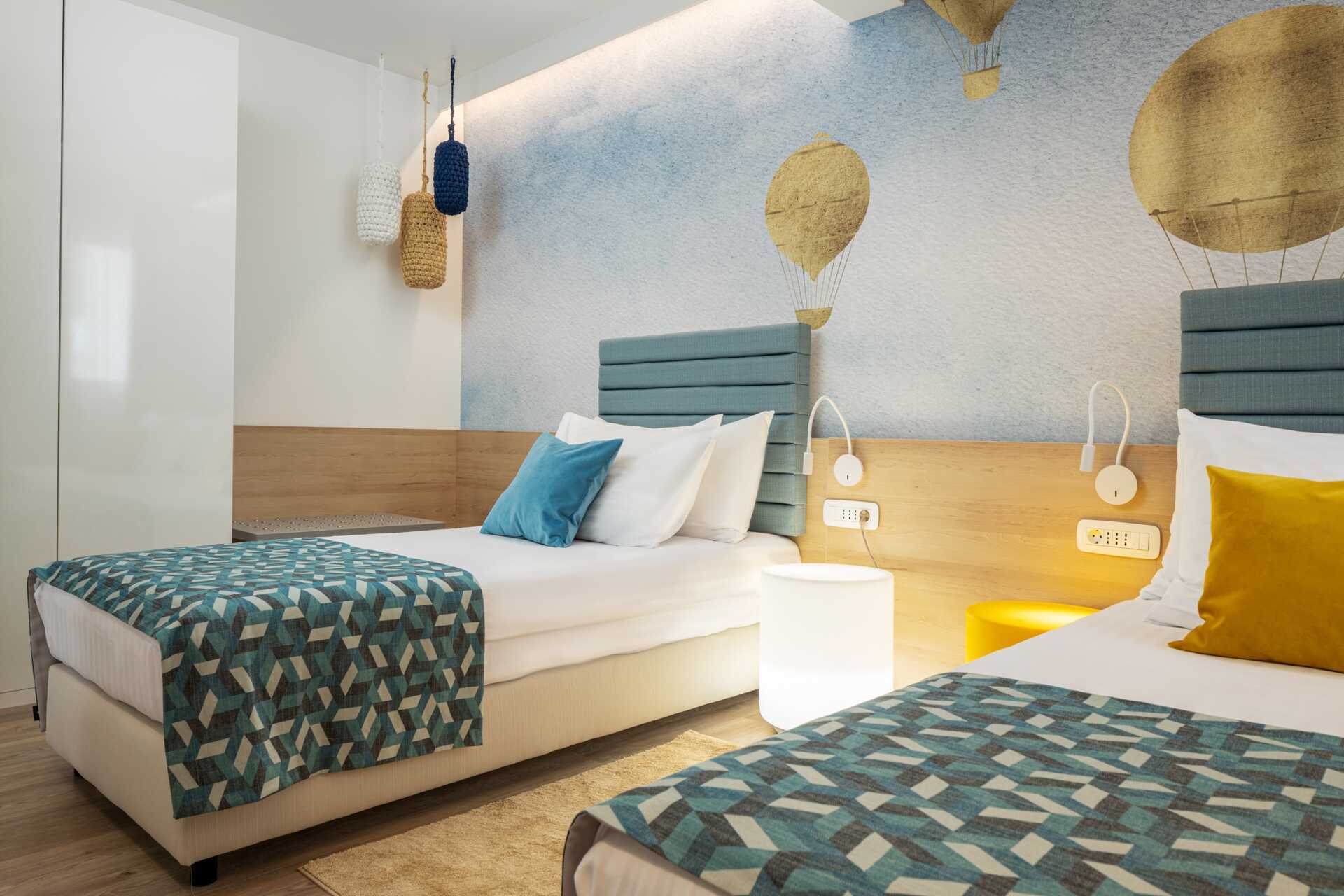 Familjerum med balkong och begränsad havsutsikt. Familjerummet består av två separata sovrum. Ett sovrum med en dubbelsäng och ett sovrum med två enkelsängar eller en dubbelsäng. Möjlighet till extrabäddar i bäddbar soffa. Minikök med kokplattor, kylskåp, vattenkokare och enkel köksutrustning. Wifi, luftkonditionering ingår och deponering ingår. Tv med internationella kanaler. Hårtork. Badrum med dusch och wc. Städning 5 ggr/vecka.