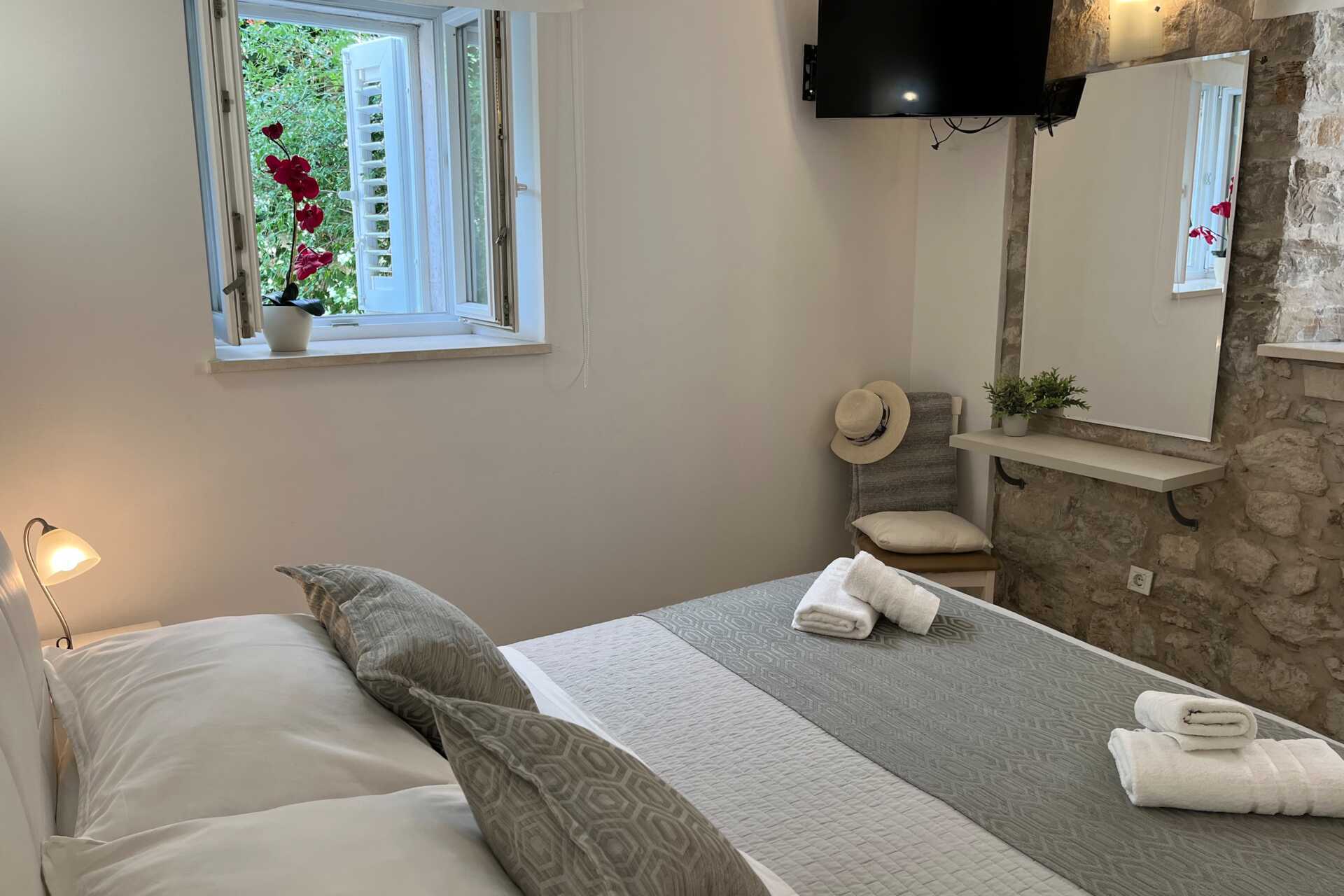 Läget och personalen. Hotellet låg i gamla stan, nära till busstationen, mataffärer och stränder. Ägaren Marina och städerskan Selma var trevliga och hjälpsamma. Rummen fina och köket otroligt välutrustat. Jag hade en stor balkong med fin utsikt över staden och bergen. Det kändes som hemma, var där i tre veckor.