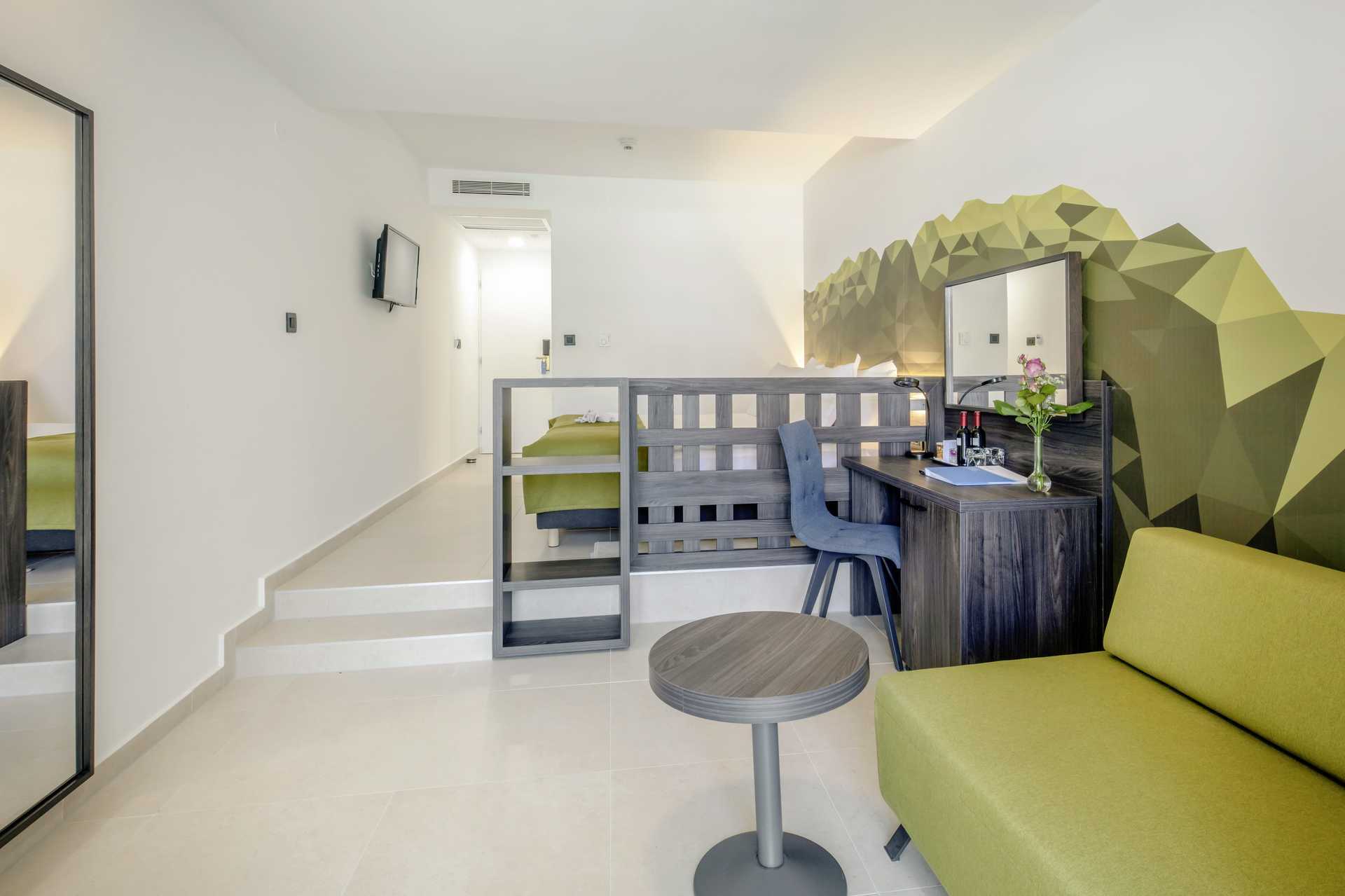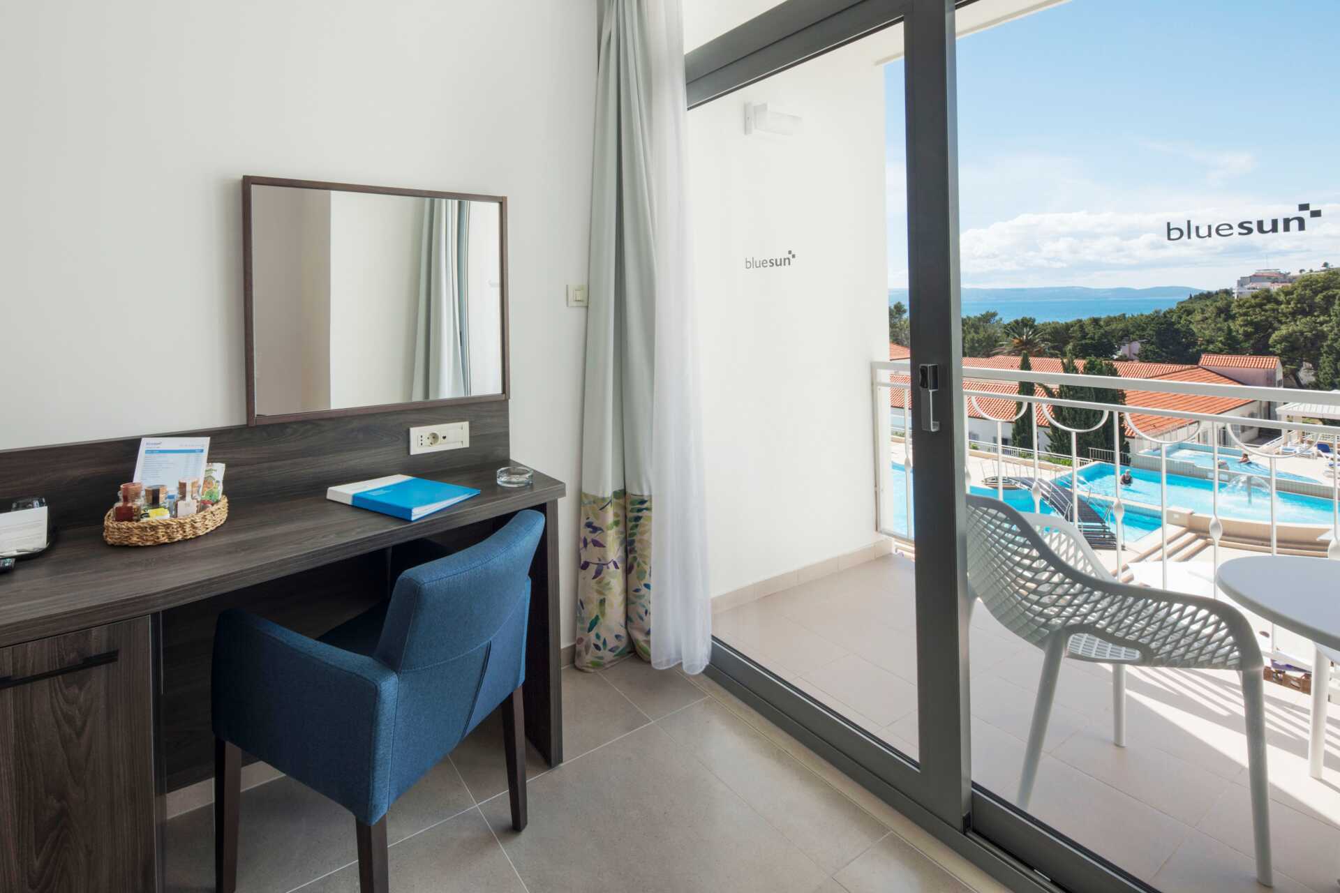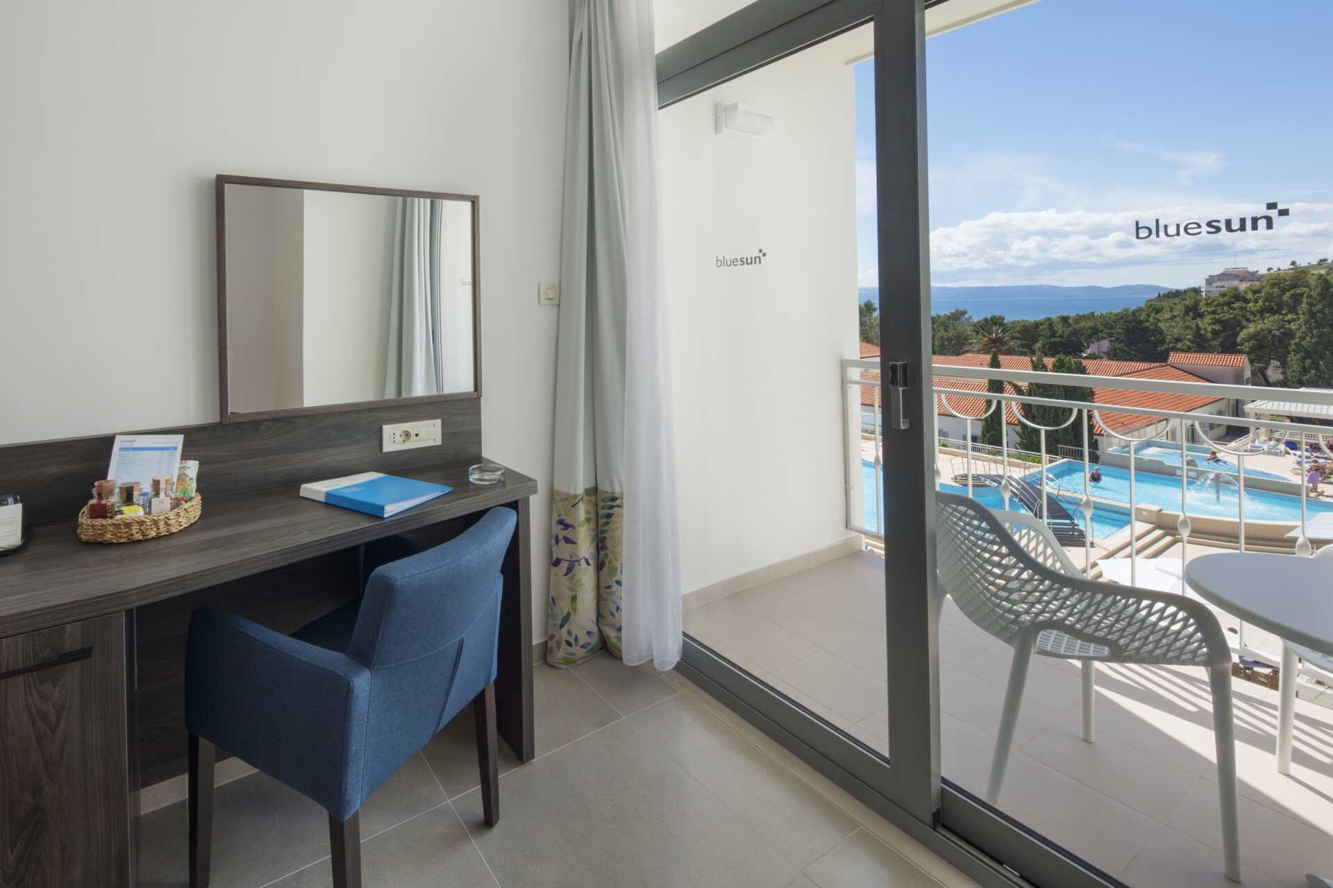 Superiorrum med balkong, vissa med begränsad havsutsikt. Två enkelsängar. Möjlighet till extrabädd i bäddsoffa. Wifi, luftkonditionering och deponering ingår. Minibar. Tv med internationella kanaler. Hårtork. Badrum med dusch och wc. Städning 7 ggr/vecka.