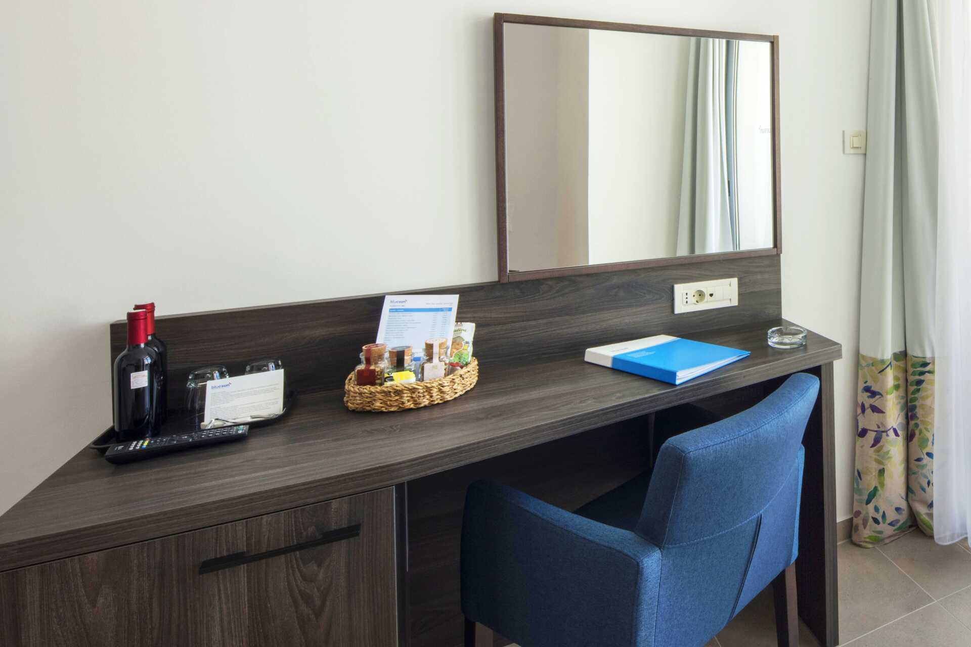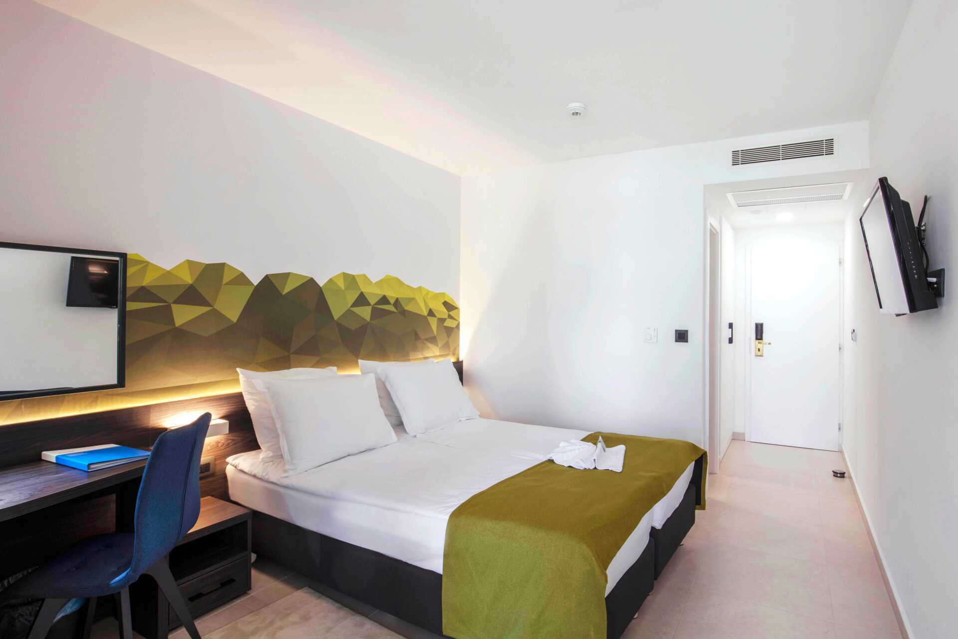 Dubbelrum med balkong, vissa med begränsad havsutsikt. Två enkelsängar. Wifi, luftkonditionering och deponering ingår. Minibar. Tv med internationella kanaler. Hårtork. Badrum med dusch och wc. Städning 7 ggr/vecka.