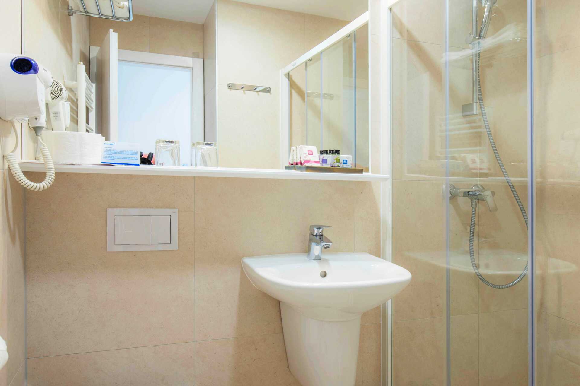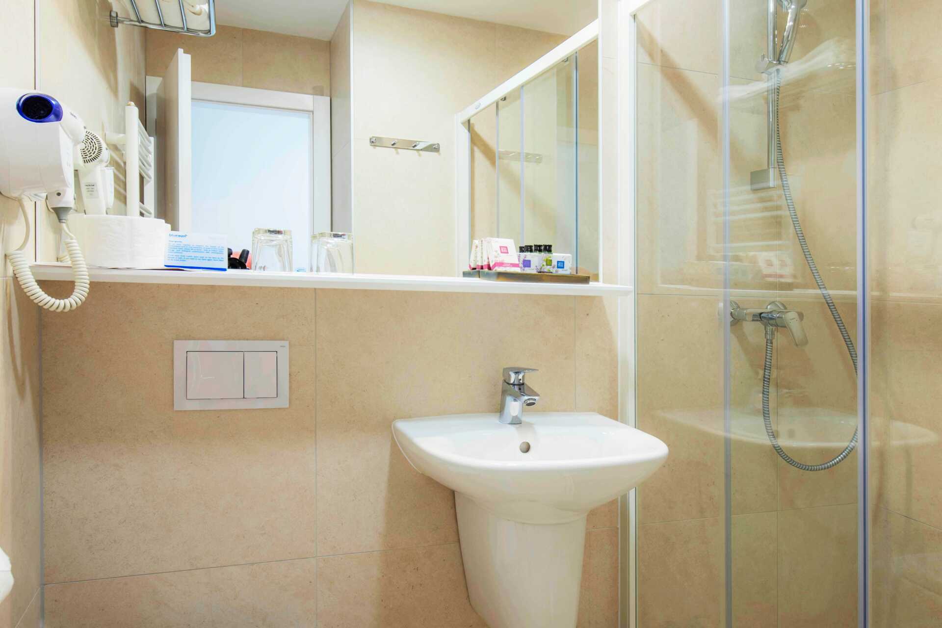 Enkelrum med balkong och begränsad havsutsikt. En säng. Wifi, luftkonditionering och deponering ingår. Minibar. Tv med internationella kanaler. Hårtork. Badrum med dusch och wc. Städning 7 ggr/vecka.