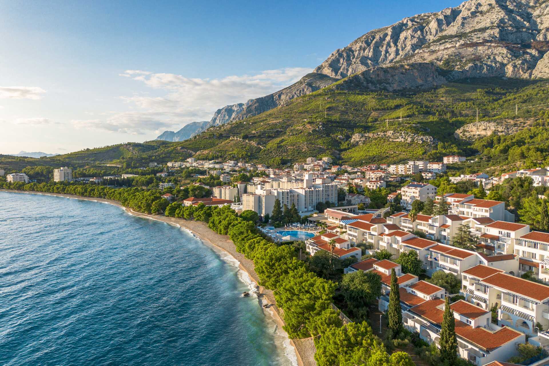Bluesun Holiday Village Afrodita ligger i en grönskande trädgård vid den fina klapperstenstranden i Tucepi. Hotellets poolområde har en stor pool, en barnpool och en poolbar som serverar lättare måltider under dagen. Solstolar, parasoller och poolhandukar ingår.