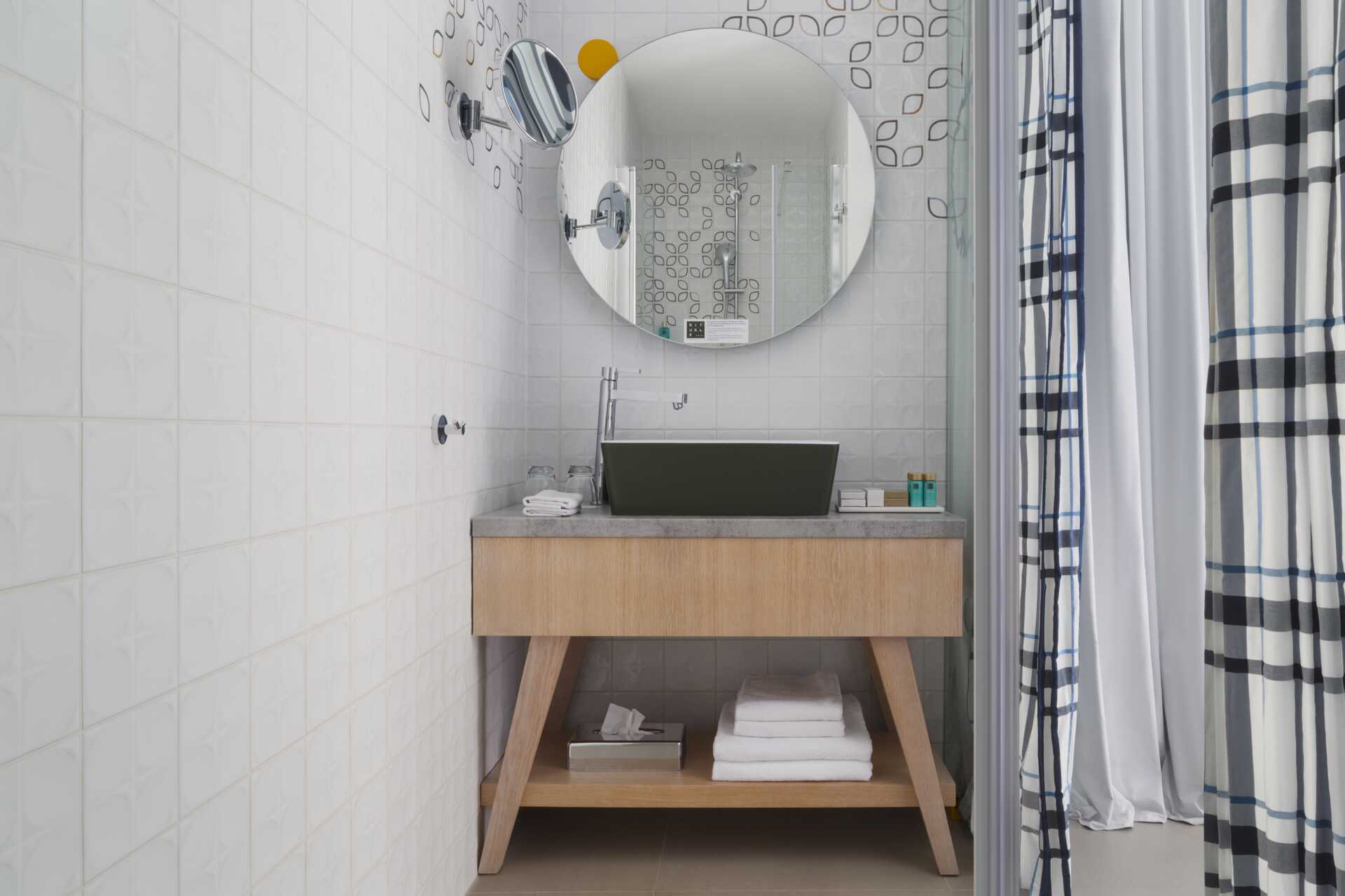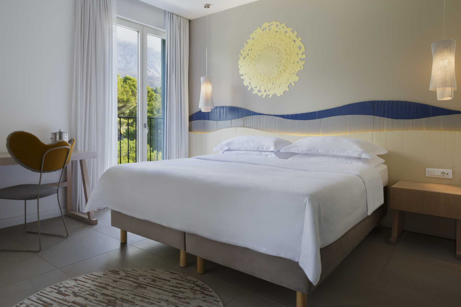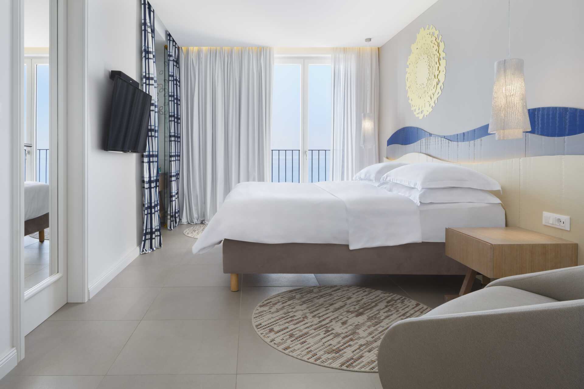 Dubbelrum med fransk balkong alternativt balkong, vissa med havsutsikt. Två enkelsängar. Wifi, luftkonditionering och deponering ingår. Kylskåp. Vattenkokare samt kaffe och te. Tv med internationella kanaler. Tofflor. Hårtork. Badrum med dusch och wc. Städning 7 ggr/vecka.