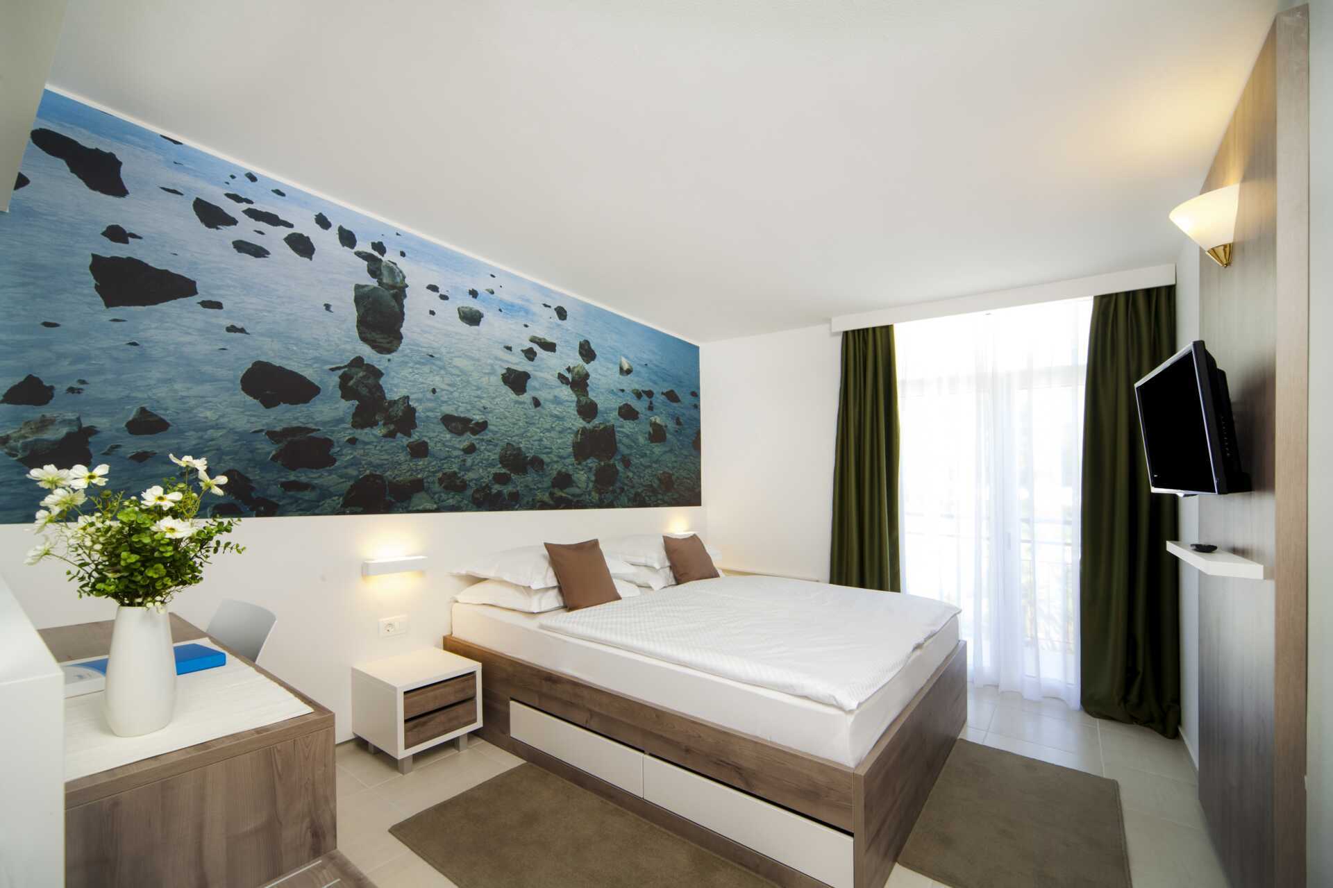 Dubbelrum med balkong, vissa med begränsad havsutsikt. Rummen ligger i huvudbyggnaden. En dubbelsäng. Wifi, luftkonditionering och deponering ingår. Tv med internationella kanaler. Hårtork. Badrum med dusch och wc. Städning 7 ggr/vecka. Barn under två år räknas in i maxantalet personer i rummet.