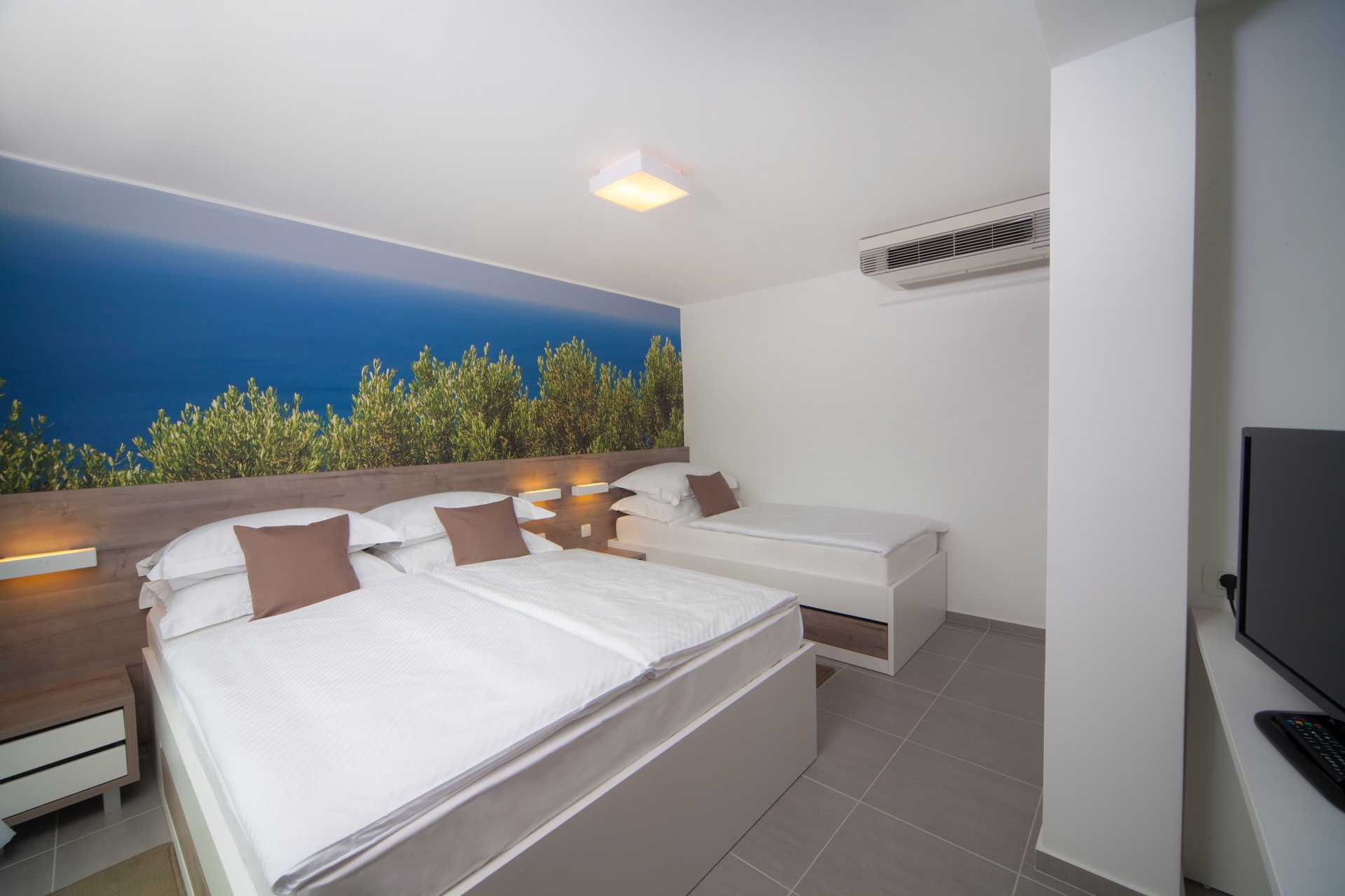 Familjerum med balkong eller terrass. Rummen ligger i sidobyggnaderna. Familjerummet består av två separata sovrum. En dubbelsäng varje sovrum. Möjlighet till extrabädd i enkelsäng. Wifi, luftkonditionering och deponering ingår. Tv med internationella kanaler. Hårtork. Badrum med badkar och wc. Städning 7 ggr/vecka. Barn under 2 år räknas in i maxantalet personer i rummet.