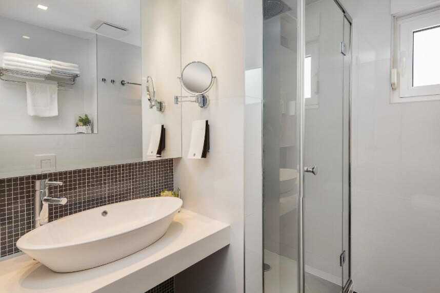 Dubbelrum, ingen uteplats men vissa rum har havsutsikt från fönstret. Rummen ligger i den nya hotelldelen. En dubbelsäng eller två enkelsängar. Möjlighet till extrabädd i bäddsoffa. Wifi, luftkonditionering och deponering ingår. Minibar. Tv med internationella kanaler. Hårtork. Badrum med badkar eller dusch samt wc. Städning 7 ggr/vecka.