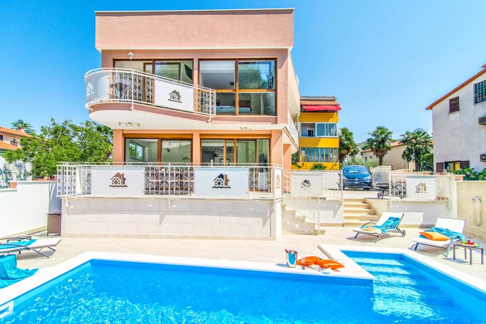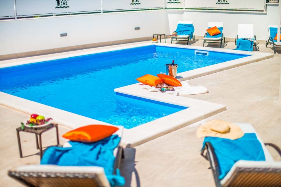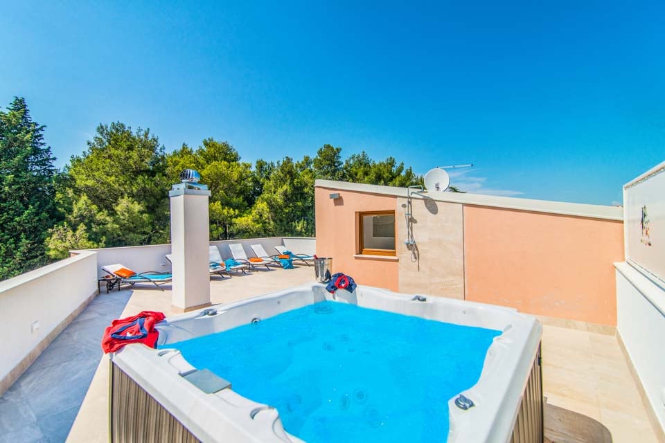 Även med så nära avstånd till stranden finns det fortfarande massor att erbjuda på Villa Coral Reef som gör det svårt att släppa loss. Den glittrande poolen är vår favorit, med kristallklart vatten som frestar dig med ett uppfriskande eftermiddagsdopp. Om du inte vill plaska runt finns det gott om solstolar utspridda där du kan njuta av solen. Det finns till och med en takterrass med en lyxig bubbelpool, det bästa stället att titta på de sensationella istriska solnedgångarna. Middagen har aldrig smakat så gott när den avnjuts i den friska havsluften, med ett utomhusbord perfekt för att hugga in i medelhavsdelikatesser.