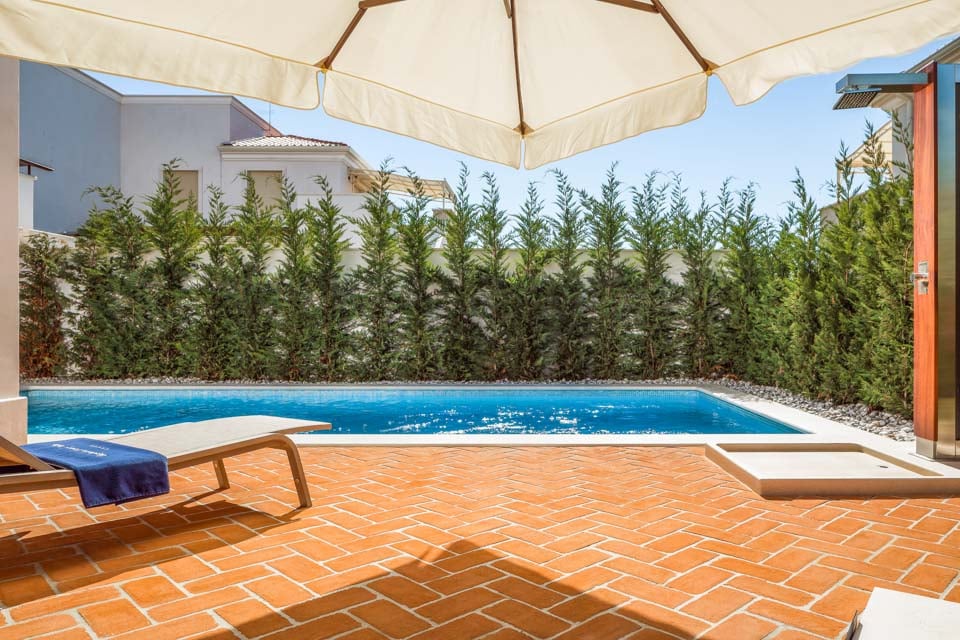 Om du vill komma bort från allt liv och rörelse borde denna charmiga kroatiska tillflyktsort stå högst upp på din lista. Den bästa delen? Det måste vara den härliga tomten. Den avskilda tegelterrassen är omgiven av frodiga trädgårdar, där den generöst tilltagna poolen inbjuder till ett dyk rakt i. Flankerad av en rad mjuka solstolar är det perfekt för att varva ner i solskenet efter ett uppfriskande eftermiddagsdopp. Matplatsen utomhus är den pittoreska miljön för middag, där du kan grilla en festmåltid på grillen och hugga in medan du tittar på solen som sakta går ner. Beläget på den vidsträckta Istriska landsbygden i den sömniga byn Vabriga, njut av det lokala livet och fördjupa dig i den avslappnade livsstilen. Det perfekta läget för stranden, då en vacker klippig kustlinje bara ligger en kort tjugo minuters naturskön promenad genom det lantliga landskapet. Om du letar efter en dagsutflykt med historia i åtanke, bege dig till kuststaden Pula, känd för sin pulserande hamn, vackra stränder, förstklassiga gastronomi och förfallna romerska ruiner.