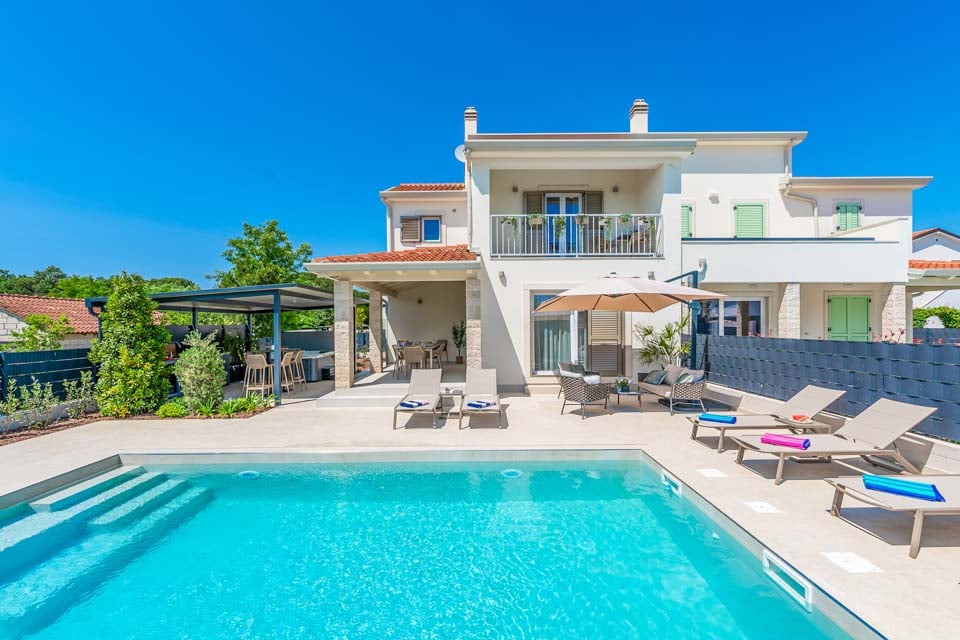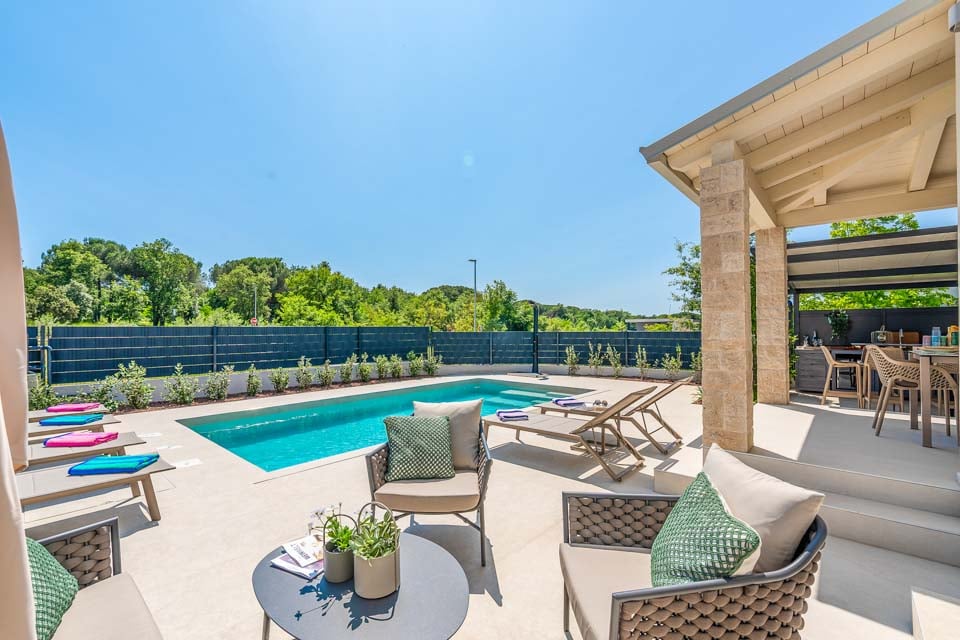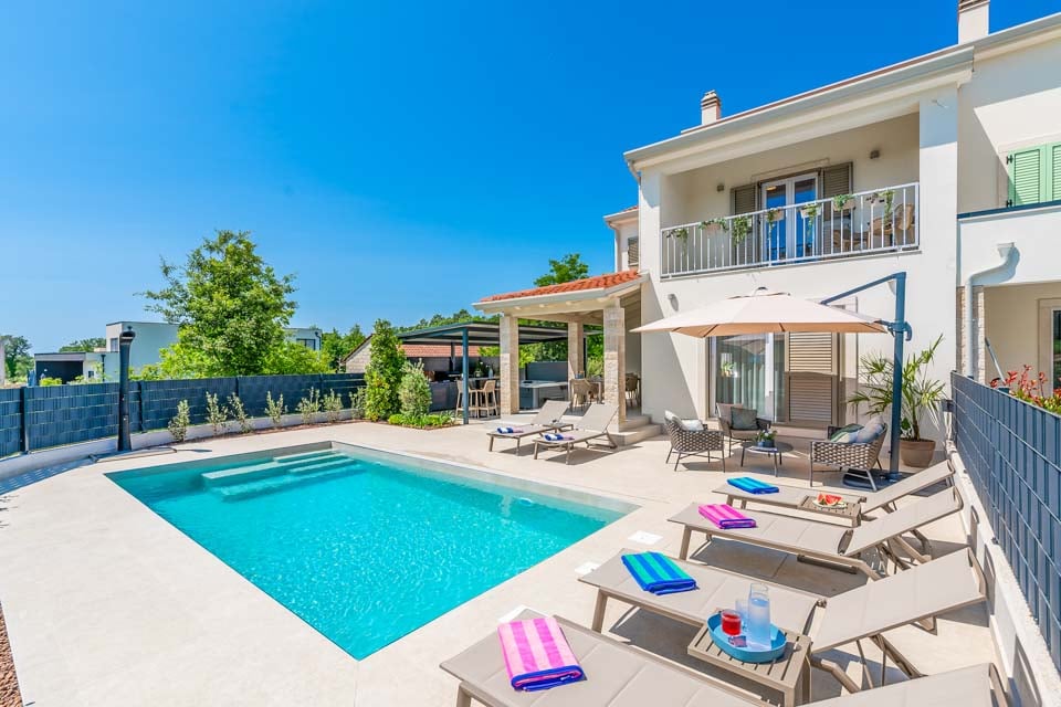 Kliv in i Villa Luminosa, en elegant oas bara en kort bilresa från Porečs pulserande hjärta. Denna villa med två sovrum är designad för komfort och sammanhållning och blandar elegant modern interiör med inbjudande utomhusutrymmen som gör att varje ögonblick känns avslappnat.