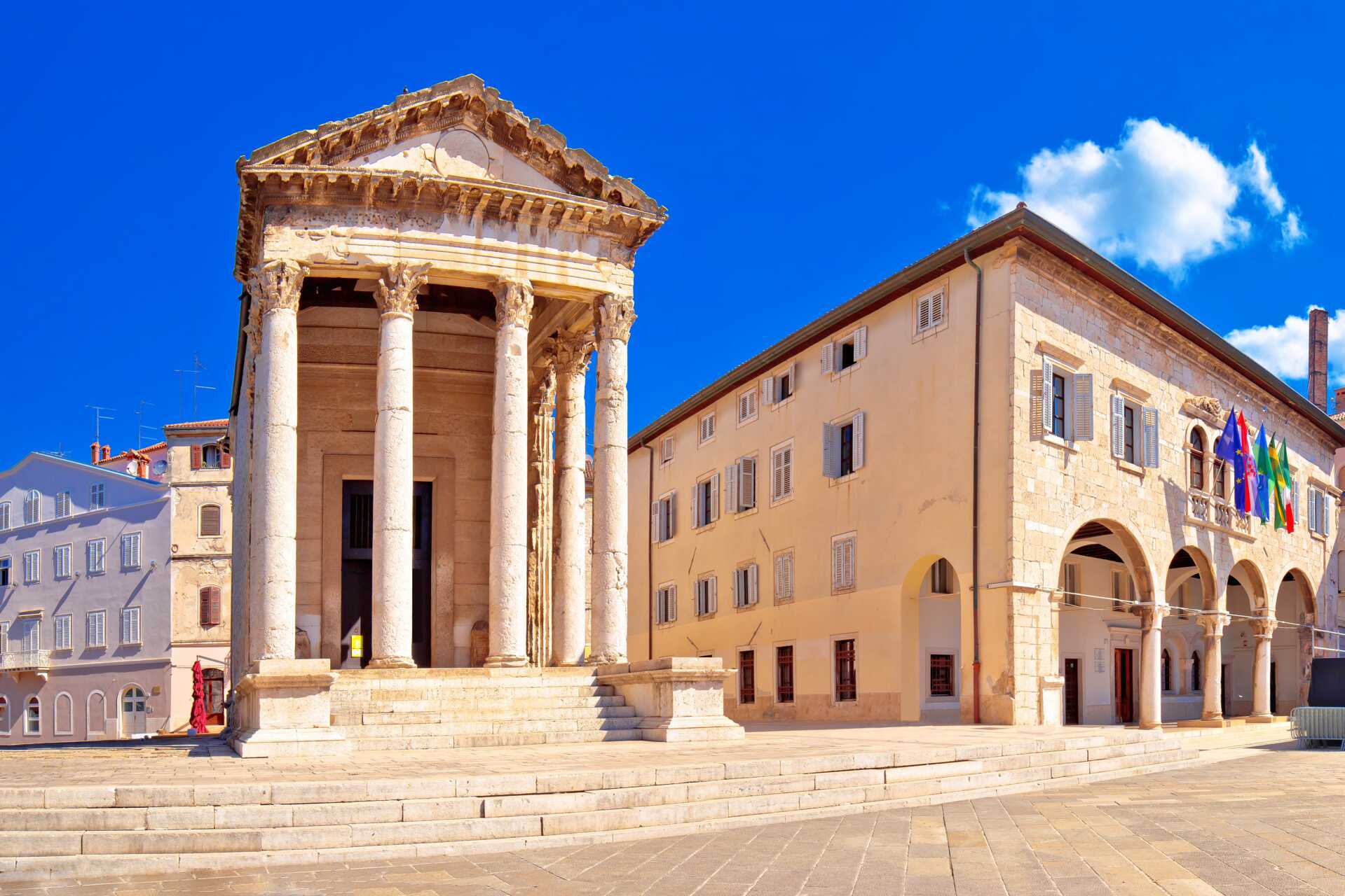 Pula brukar beskrivas som en miniversion av Rom – med breda promenadstråk, smala gränder och även en egen amfiteater. Världens sjätte största amfiteater, som i folkmun kallas för ”Arena”, är mycket välbevarad och i dag används den bland annat till konserter, filmfestivaler och liknande aktiviteter. Förutom amfiteatern har Pula även ett av världens bäst bevarade romerska tempel, Augustustemplet, en triumfbåge och Heliga Jungfru Marie himmelsfärdskatedral.