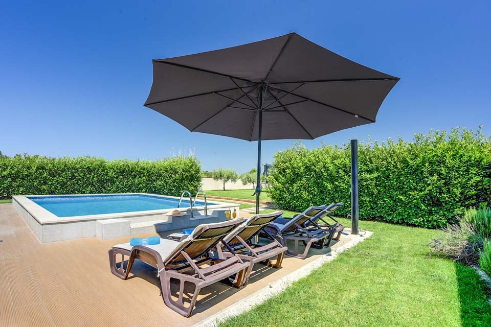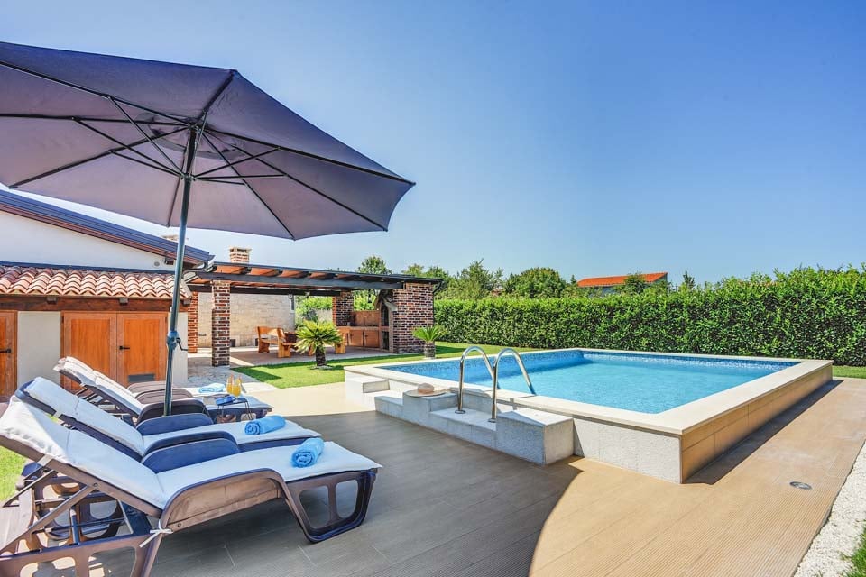 Denna helt nya villa är en arkitektonisk skönhet, med en modern fyrkantig design som förblir trogen den kroatiska stilen med sina terrakottaröda tak och stenkalkade väggar. Villan är uppdelad i två separata studior, vardera med kök och vardagsrum, och erbjuder extra avskildhet för små grupper och rymmer bekvämt upp till fyra vuxna. En studio har en stor rund dubbelsäng med bakomliggande en generös klädkammare. Interiören är en vacker återspegling av istrisk design och sprudlar av lokal charm, med sina ursprungliga takbjälkar, tegeleldstäder, fräscha vita väggar och rustika stenfasader.