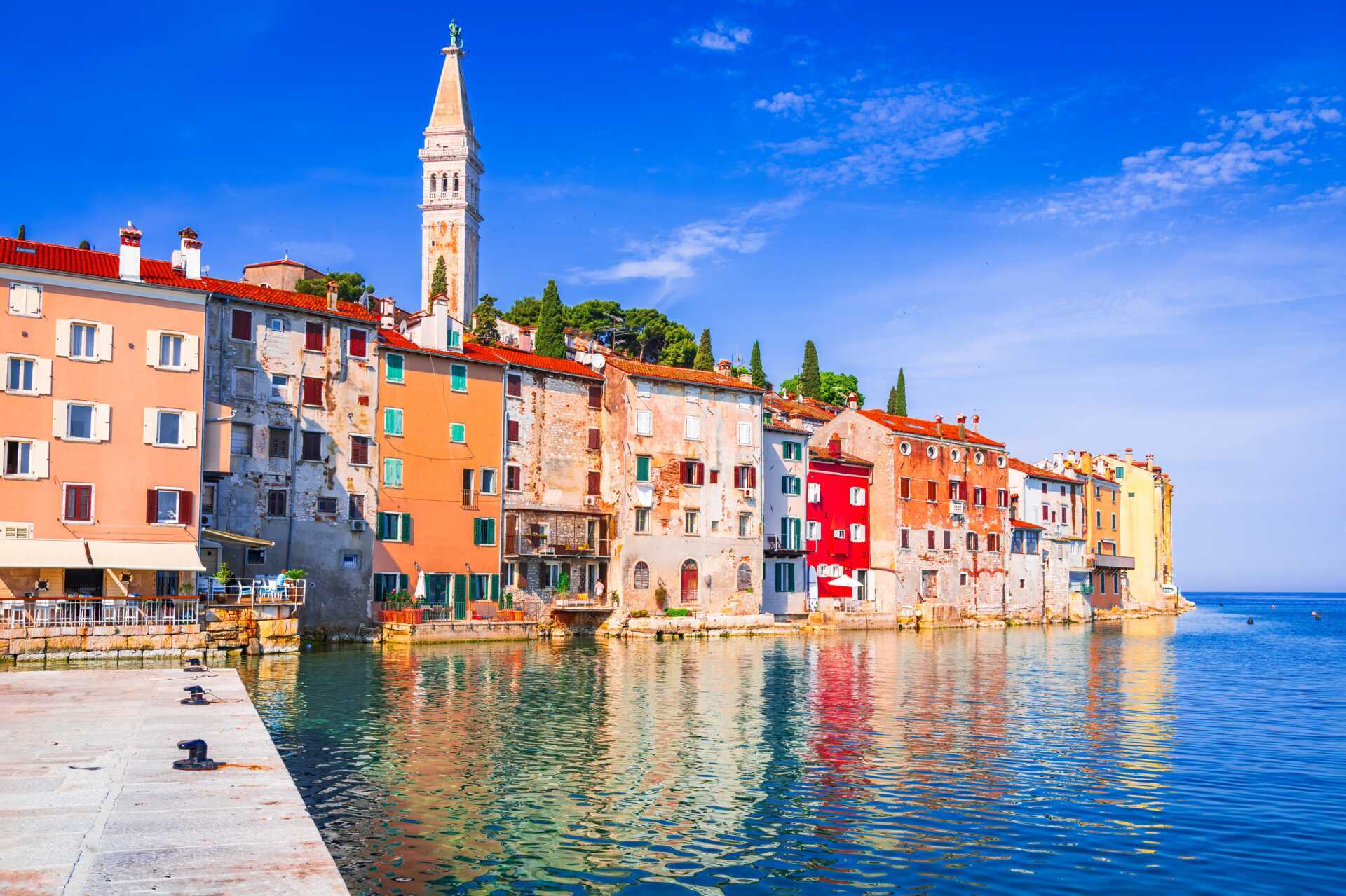 Rovinj är en av Istriens charmigaste kuststäder med kullerstensklädda gator, trånga gränder och färgglada byggnader. Vid torget Trg Maršala Tita i hamnen ligger traditionella tavernor och hippa restauranger på rad. Längs gatorna Grisia och Carera ligger ateljéer och småbutiker som säljer konsthantverk, tryffel, olivolja, grappa, och vin – perfekt att köpa med hem. Även i gamla stan finns fina badmöjligheter från badplattformar.