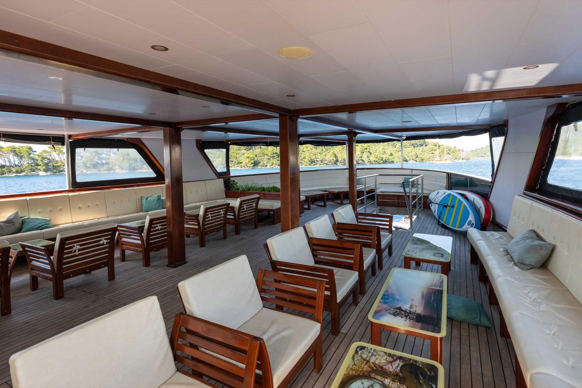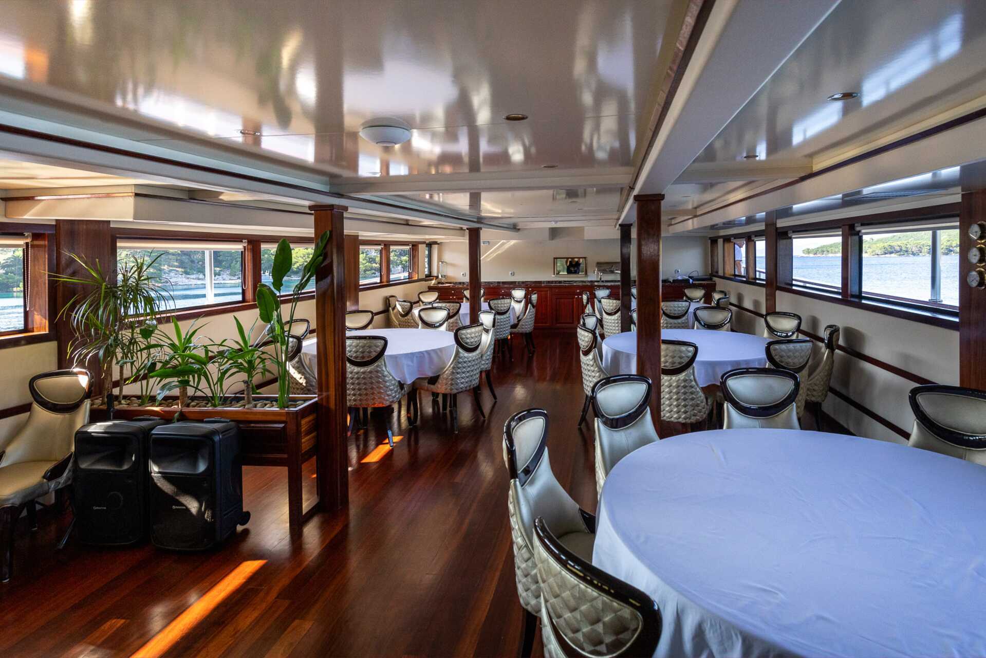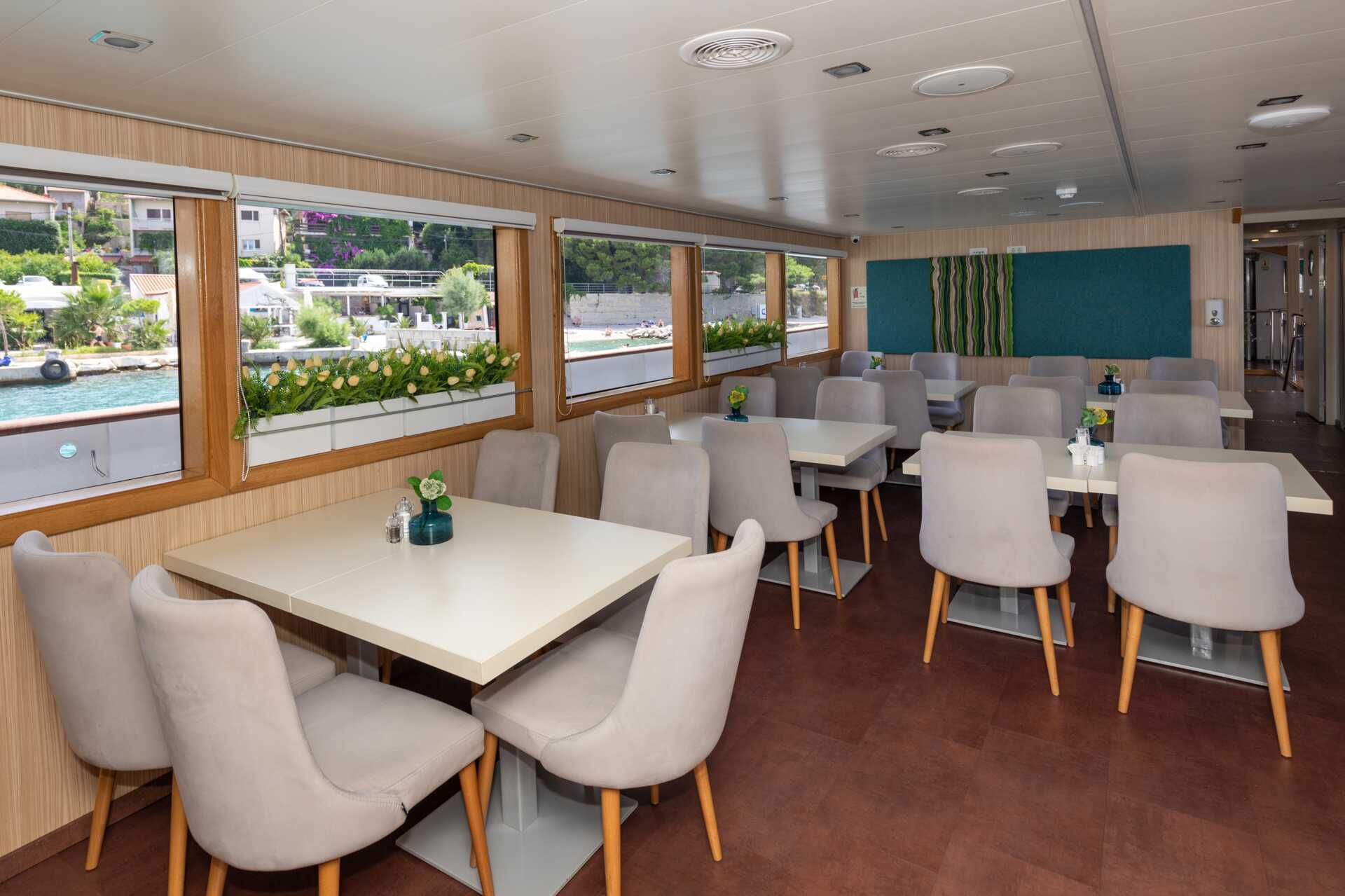 Det finns 18–21 hytter ombord, alla med antingen en dubbelsäng eller två enkelsängar. Tv med internationella kanaler. 220 Volt. Luftkonditionering och liten deponeringsbox ingår. Hårtork. Moderna badrum med dusch och toalett. Garderob och bagageutrymme under sängen. Hytterna varierar i inredning och storlek, men de är ca 10–15 kvadratmeter i storlek. Hytterna på däck 1 har ett litet ventilfönster. Handdukar och sängkläder byts en gång i mitten av veckan.