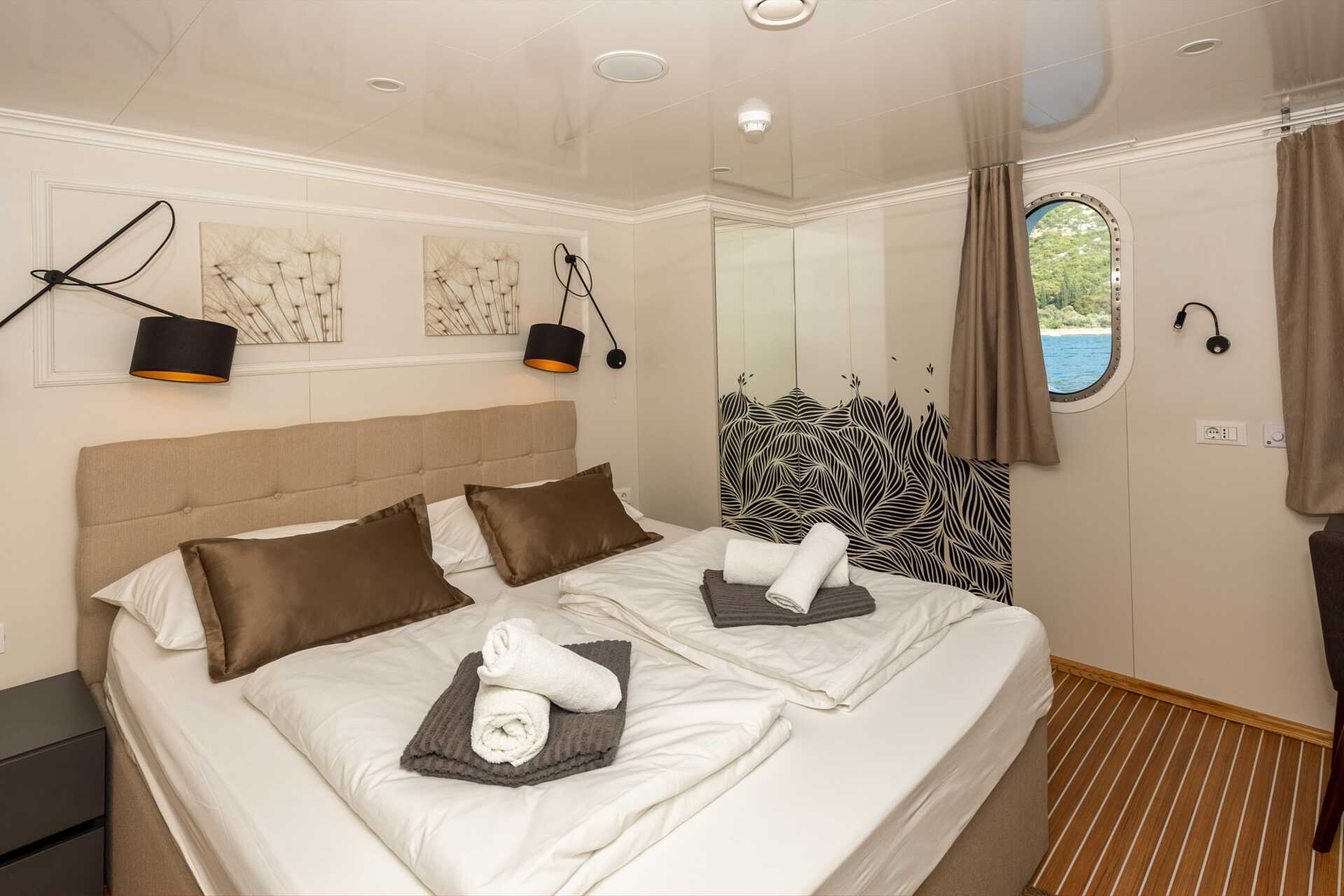 Det finns 18–21 hytter ombord, alla med antingen en dubbelsäng eller två enkelsängar. Tv med internationella kanaler. 220 Volt. Luftkonditionering och liten deponeringsbox ingår. Hårtork. Moderna badrum med dusch och toalett. Garderob och bagageutrymme under sängen. Hytterna varierar i inredning och storlek, men de är ca 10–15 kvadratmeter i storlek. Hytterna på däck 1 har ett litet ventilfönster. Handdukar och sängkläder byts en gång i mitten av veckan.