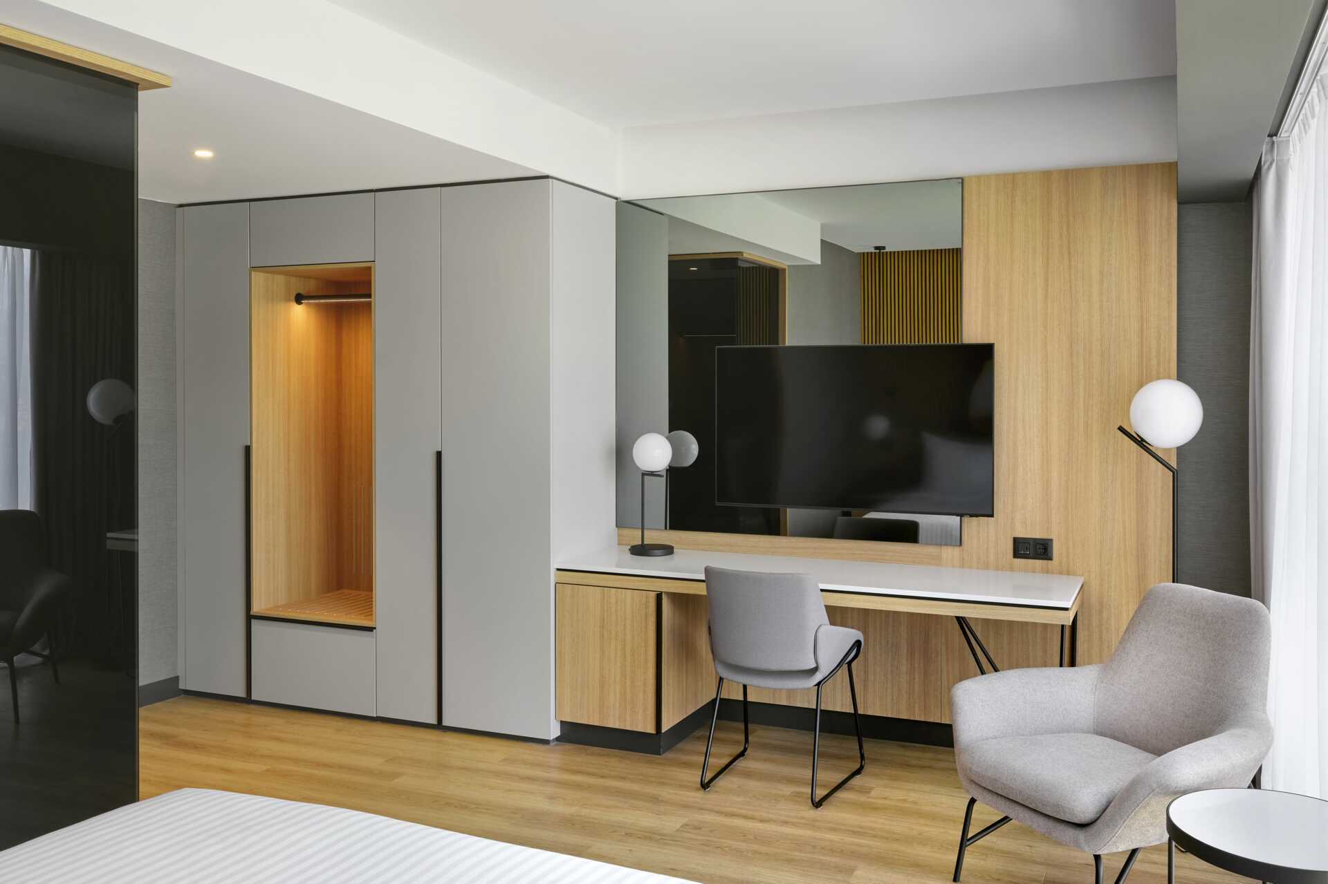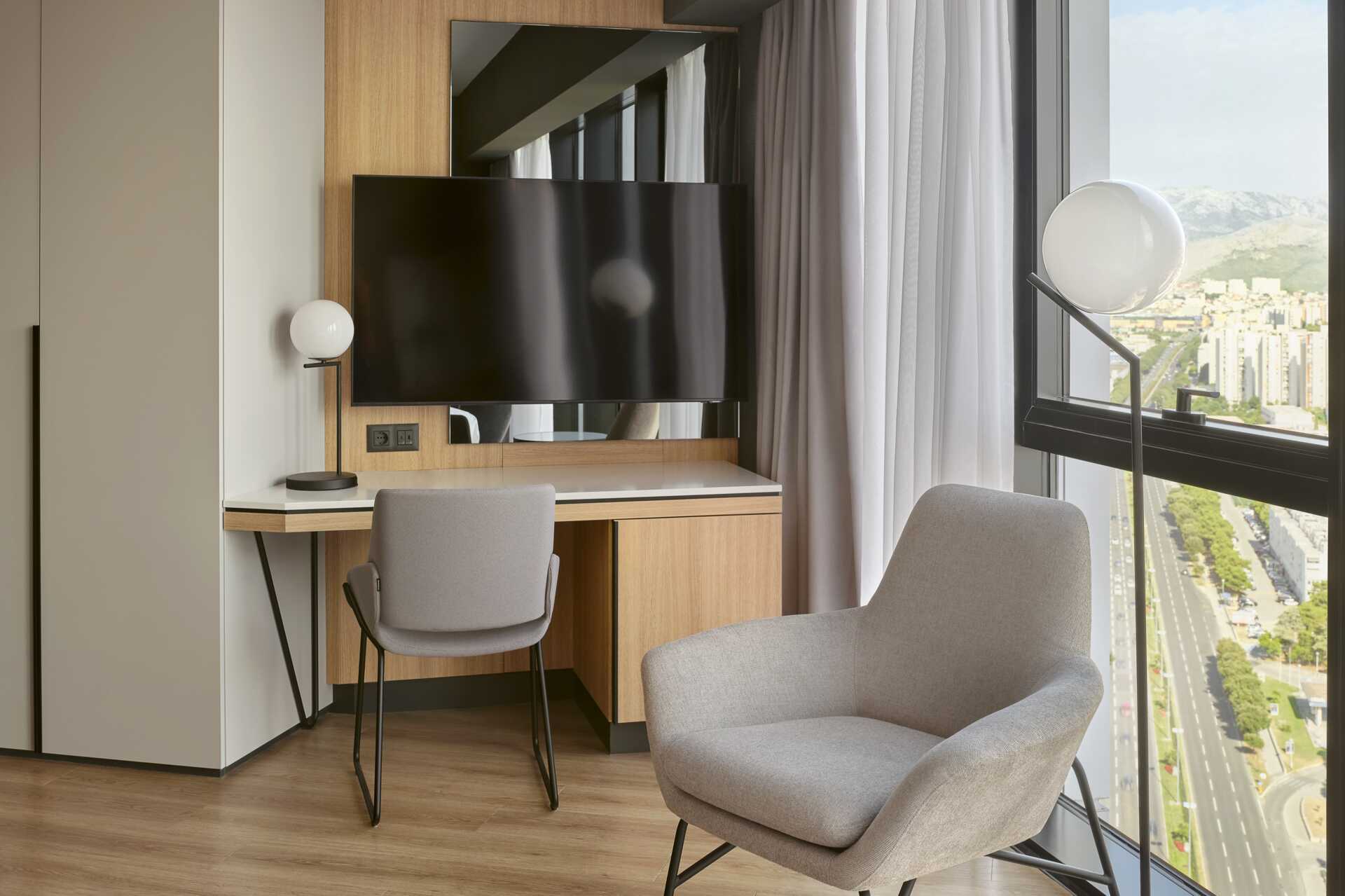 Executiverum, utan uteplats. En dubbelsäng eller en dubbelsäng och en enkelsäng. Möjlighet till extrabädd i befintliga sängar. Wifi, luftkonditionering och deponering ingår. Kylskåp. Tv med internationella kanaler. Badrockar. Hårtork. Badrum med badkar eller dusch och wc. Städning 7 ggr/vecka.