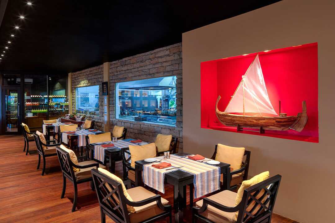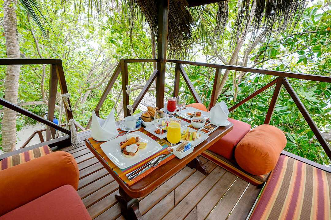 På restaurang Farivalhu serveras maten från en fast meny och restaurang Kithajima serverar japanska specialiteter. Det finns också två barer som håller öppet från tidig morgon ända fram till midnatt. Utbudet i All Inclusive är omfattade och generöst.