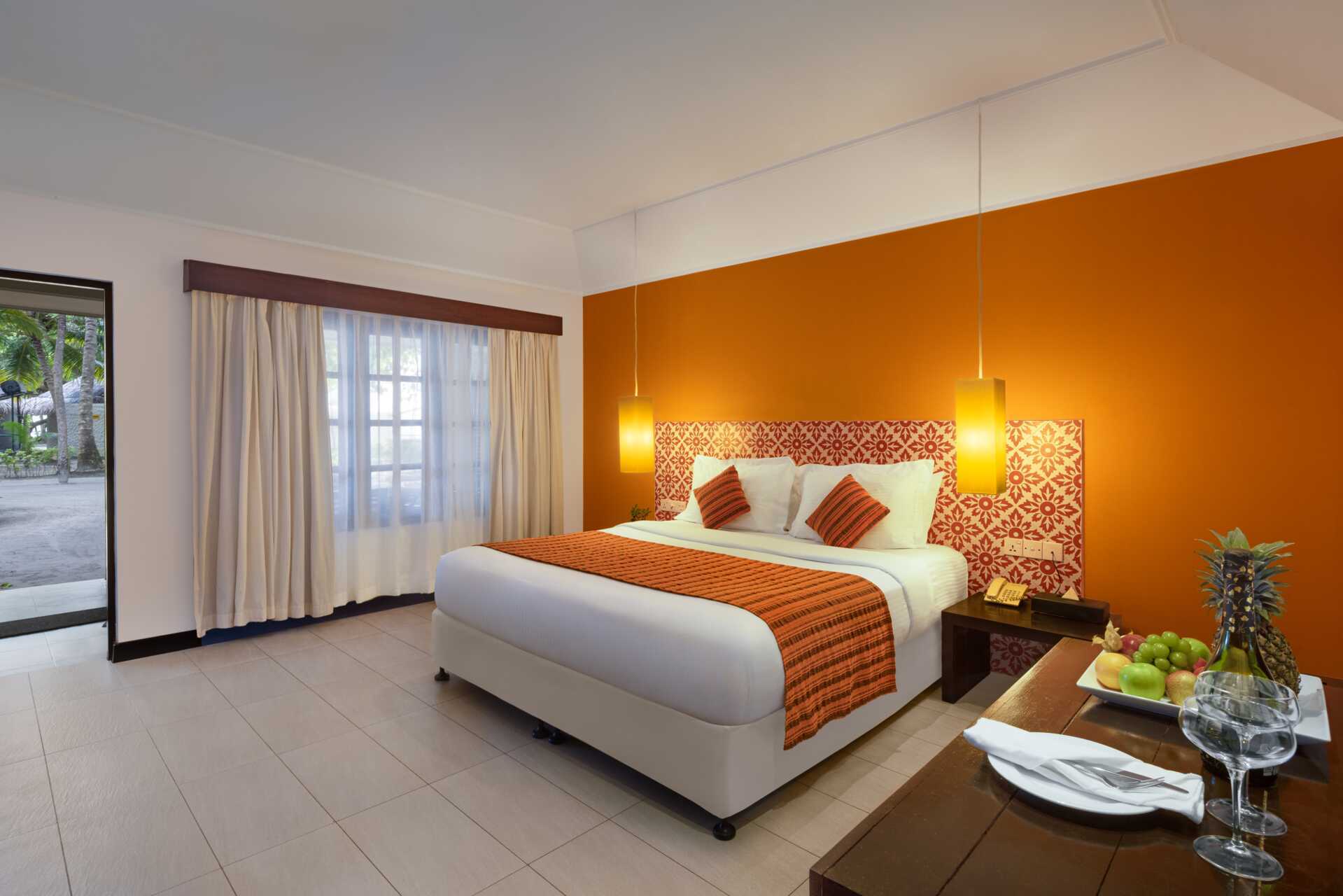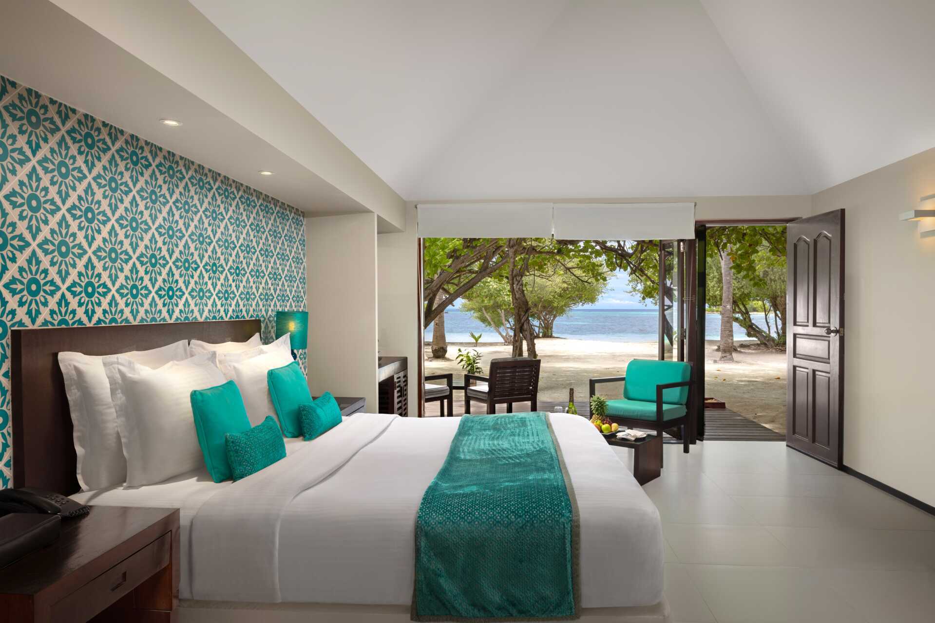 Seafront Villa med markterrass. Villorna har bästa strandläge. En dubbelsäng. Möjlighet till extrabädd för en vuxen eller två barn. Wifi, luftkonditionering och deponering ingår. Minibar ingår (läsk, juice samt två flaskor med vatten) och fylls på dagligen. Espressomaskin inklusive kapslar. Vattenkokare samt kaffe och te. Tv med internationella kanaler. Strandväska samt flipflops. Badrum med badkar eller dusch samt wc. Städning 7 ggr/vecka.