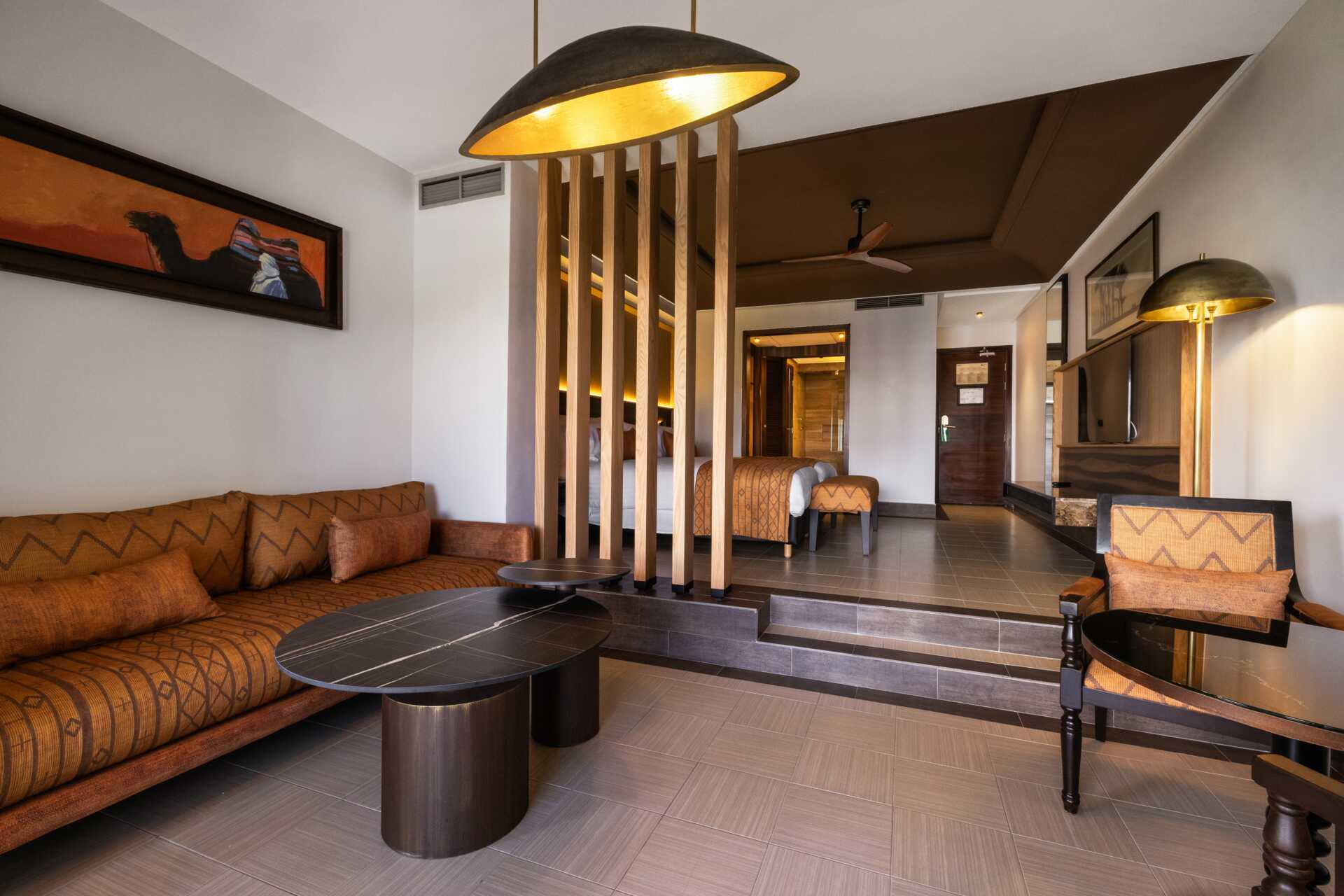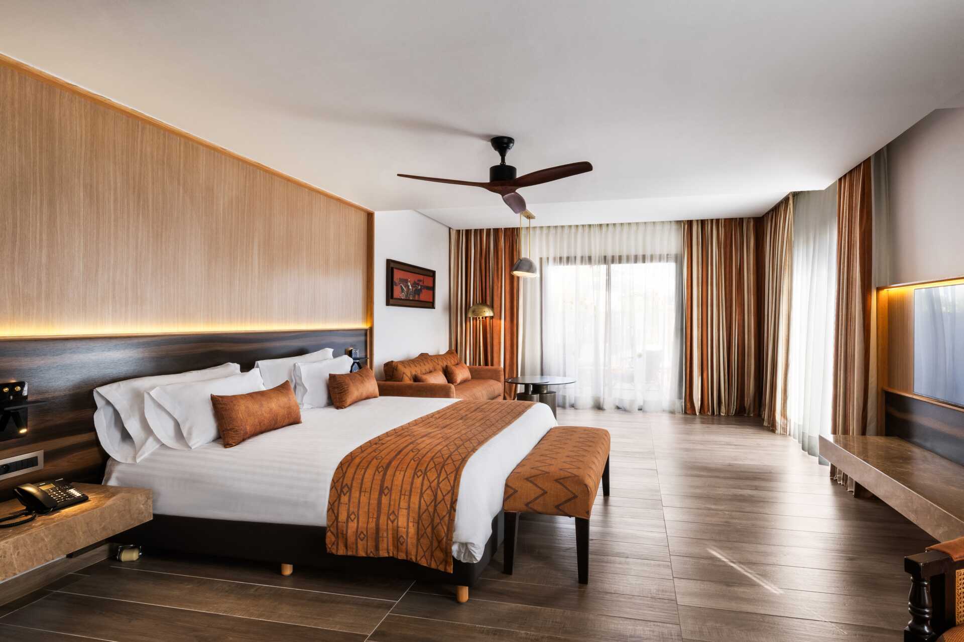 Dubbelrum med balkong eller terrass, vissa med poolutsikt. En dubbelsäng eller två bredare enkelsängar. Möjlighet till extrabädd i bäddsoffa eller i hopfällbar säng. Vardagsrumsdel med soffa. Wifi, luftkonditionering och deponering ingår. Minibar. Takfläkt. Tv med internationella kanaler. Hårtork. Badrum med dusch och wc. Städning 7 ggr/vecka. Liten nivåskillnad/ett par trappsteg i rummen.