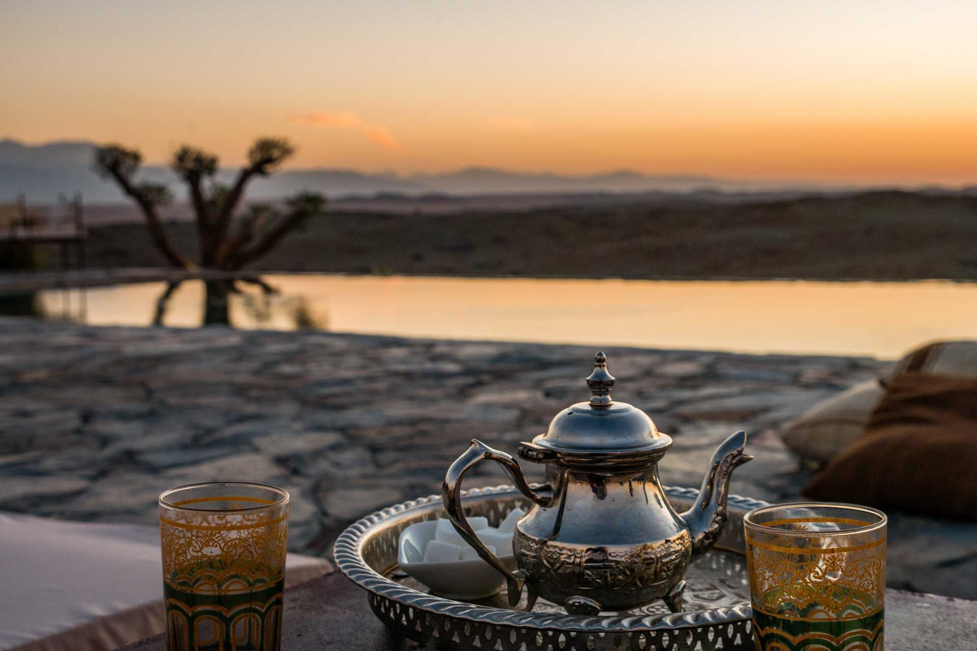 Det finns ingen badstrand i Marrakech. Här badar man i hotellens pooler.