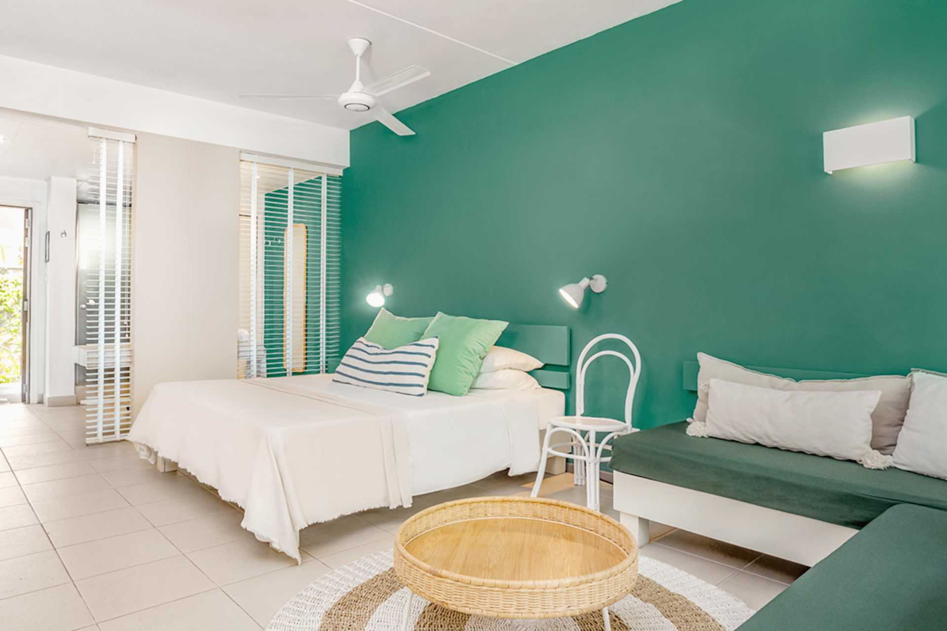 Superiorrum med terrass eller balkong. En dubbelsäng eller två enkelsängar. Möjlighet till extrabädd i bäddsoffa. Wifi, luftkonditionering och deponering ingår. Takfläkt. Kylskåp. Vattenkokare samt kaffe och te. Hårtork. Badrum med dusch och separat wc. Städning 7 ggr/vecka. Barn under två är räknas in i maxantalet personer i rummet.