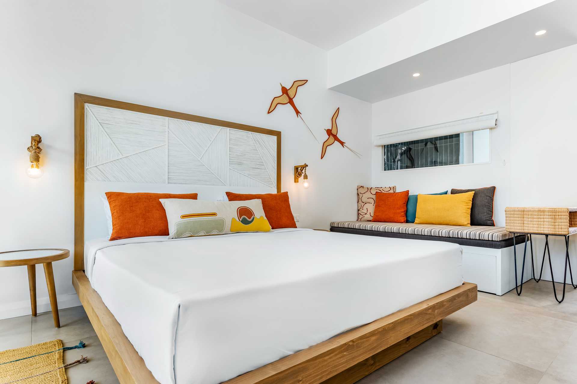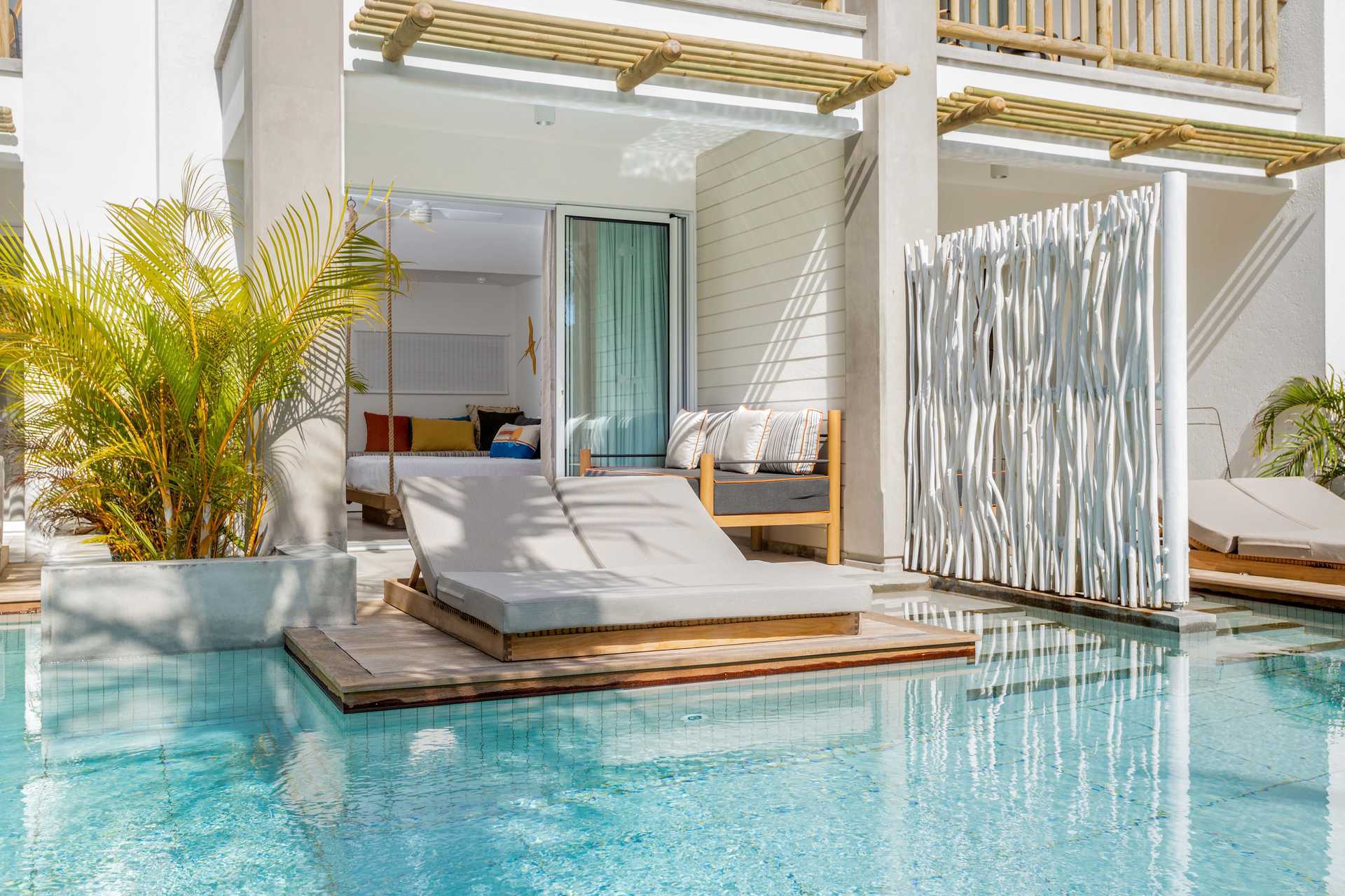 Superiorrum med markterrass och utgång till en delad pool. På terrassen finns en soffa och två loungesängar. Trappsteg ner i poolen. En dubbelsäng. Wifi, luftkonditionering och deponering ingår. Minibar mot avgift. Vattenkokare samt kaffe och te. Hårtork. Badrum med dusch och wc. Städning 7 ggr/vecka.