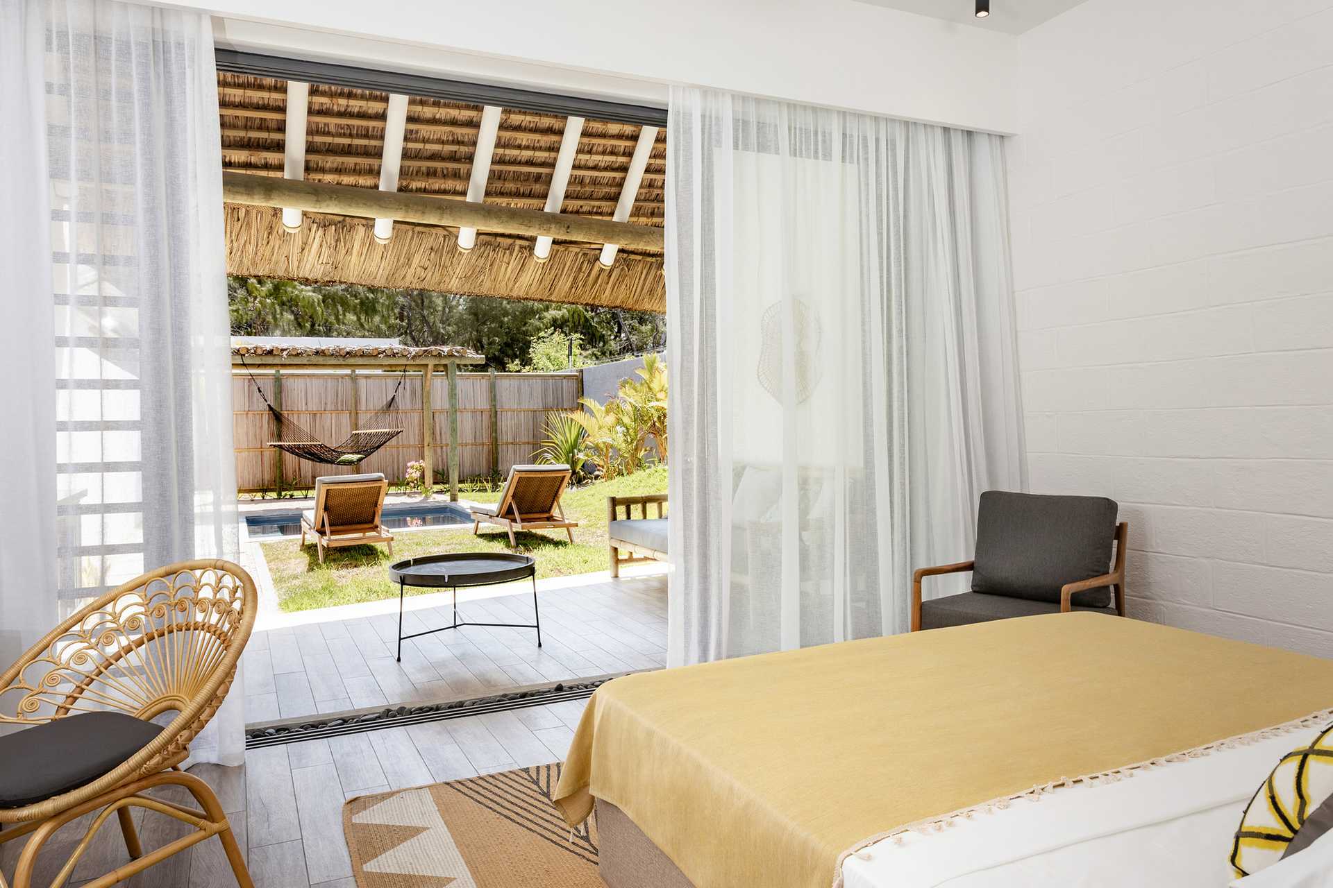 Enrumsvilla med markterrass och en privat trädgård med en egen pool. På terrassen finns en soffa, solstolar och parasoll samt en hängmatta. En dubbelsäng. Wifi, luftkonditionering och deponering ingår. Minibar mot avgift. Vattenkokare samt kaffe och te. Tv med internationella kanaler. Hårtork. Badrockar och tofflor. Badrum med dusch och wc. Städning 7 ggr/vecka.