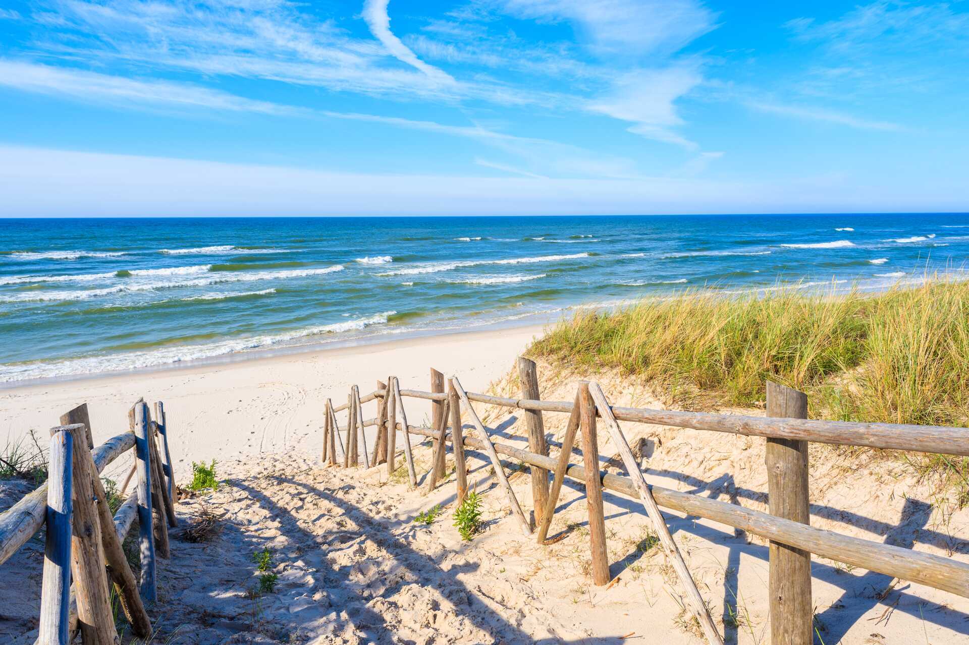 Sopot har långa, breda sandstränder som sträcker sig längs kusten och är kända för sin finkorniga sand och sitt lugna, långgrunda vatten. Stranden ligger nära centrum och den klassiska träpiren, vilket gör det enkelt att kombinera bad, promenader och strandliv.