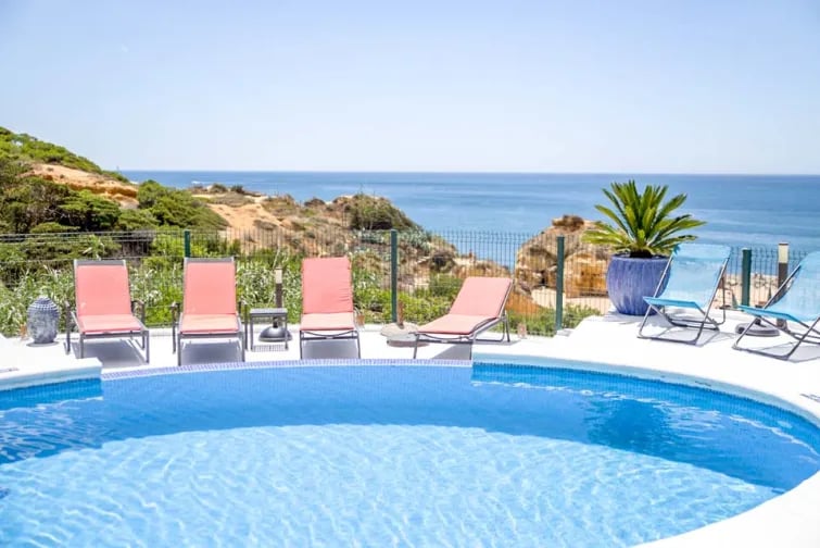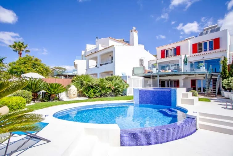 Upptäck denna fängslande strandvilla inbäddad längs Albufeiras stränder och erbjuder en lugn tillflyktsort för upp till 8 gäster. Med 4 sovrum och 3 badrum fördelade på tre omsorgsfullt utformade våningar garanterar denna oas en bekväm och tillmötesgående vistelse.