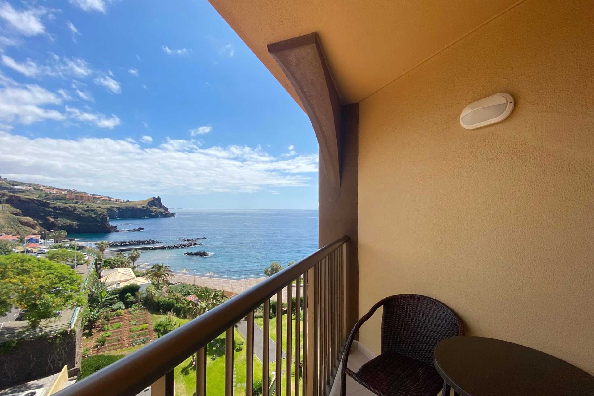 Läget vid havet med strandpromenad nedanför. Stort rum med utsikt rakt ut mot havet, skrivbord, bra läsbelysning vid säng. Stort badrum med kar. Poolområdet med stor pool att simma runt, fin innepool m bastu/ångbastu och gym. Vid dåligt väder är gym o innepool viktigt. Hotellbuss till Funchal jättebekvämt. Wifi överallt.
