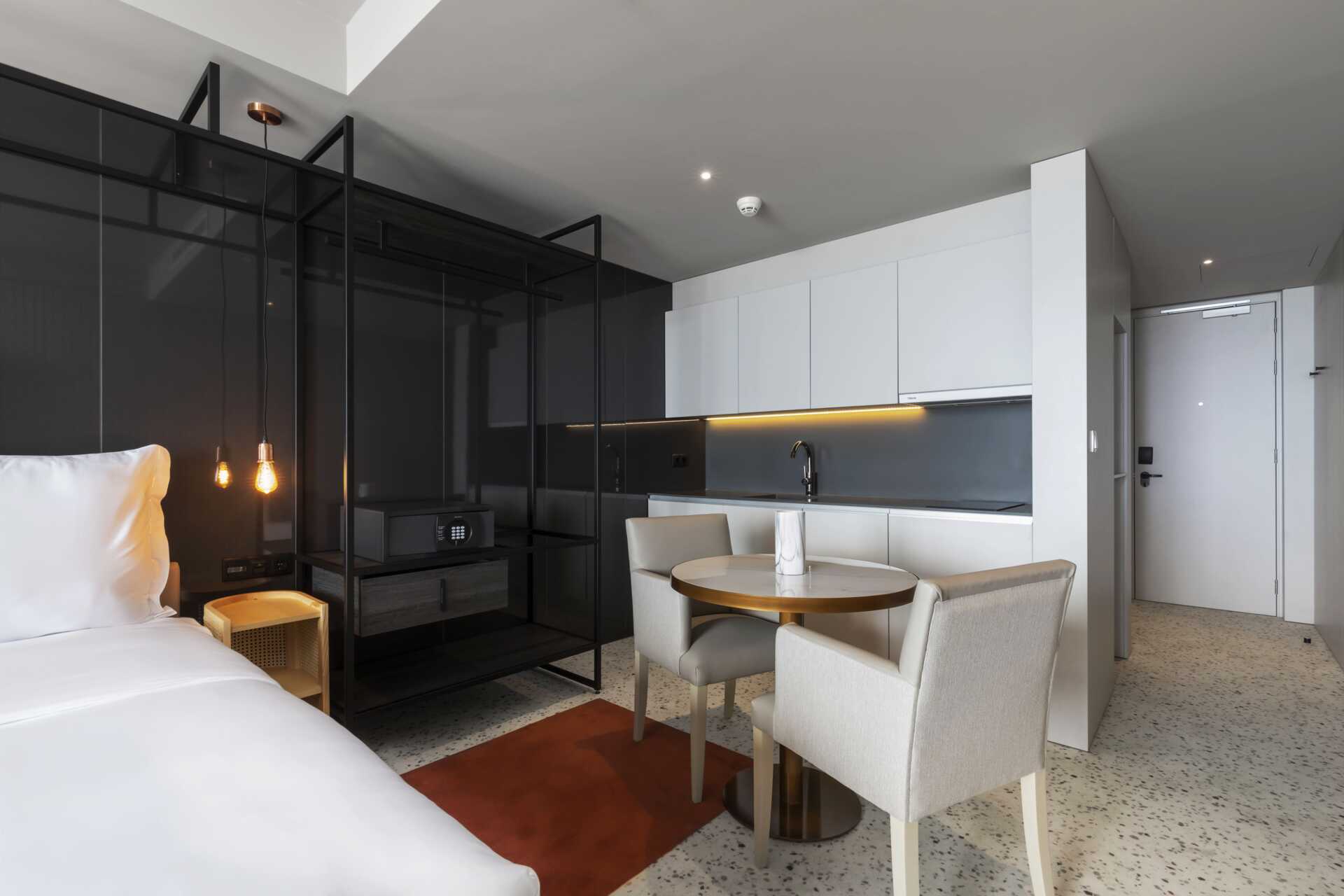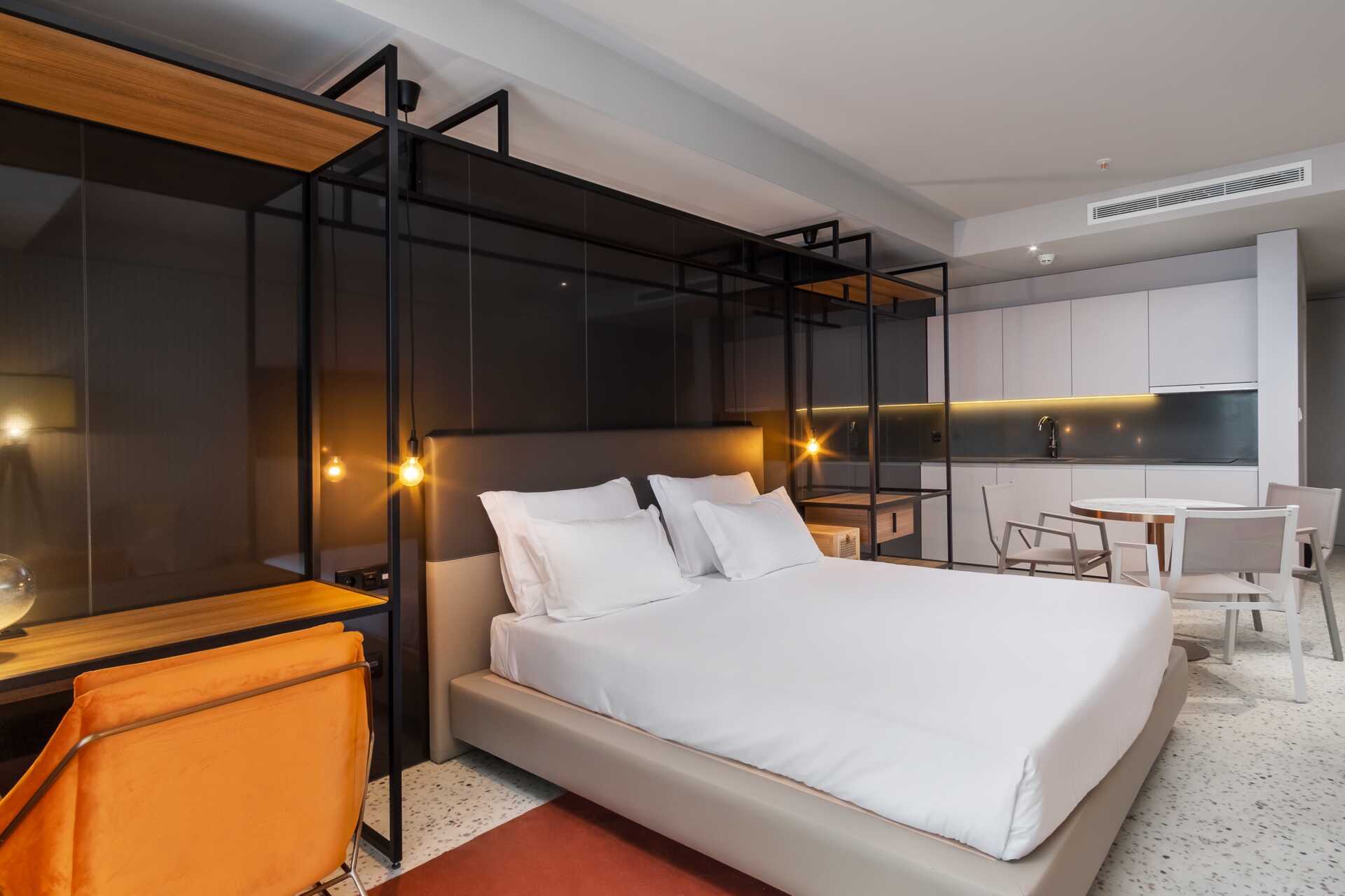 Enrumslägenhet med balkong. Sovrum kombinerat med minikök. En dubbelsäng eller två enkelsängar. Minikök med kokplattor, kylskåp, vattenkokarre samt enkel köksutrustning. Wifi och luftkonditionering ingår. Deponering mot avgift. Tv med internationella kanaler. Hårtork. Badrum med dusch och wc. Städning 7 ggr/vecka. Barn under två år räknas in i max antal personer i rummet.