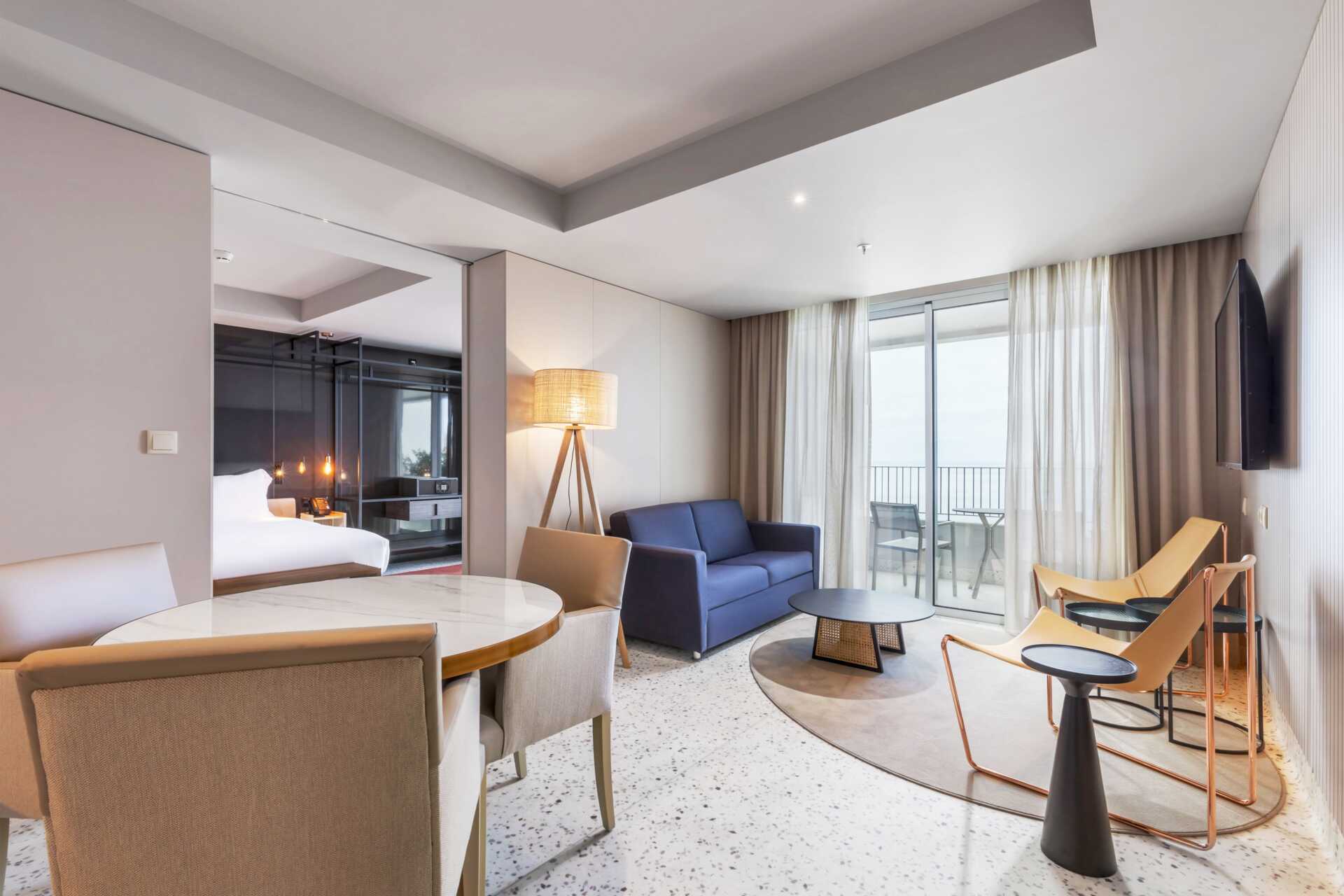 Svit med balkong. Sviten består av en sovrumsdel och en vardagsrumsdel och kan delas av med en skjutdörr. En dubbelsäng eller två enkelsängar. Möjlighet till extrabäddar i en bäddsoffa. I sviten som tar två barn i extrabädd kan barn mellan 3 till 13 år bokas in. Wifi och luftkonditionering ingår. Deponering mot avgift. Minibar. Vattenkokare samt kaffe och te. Tv med internationella kanaler. Badrockar och tofflor. Hårtork. Badrum med dusch samt wc. Städning 7 ggr/vecka. Barn under två år räknas in i max antal personer i rummet.