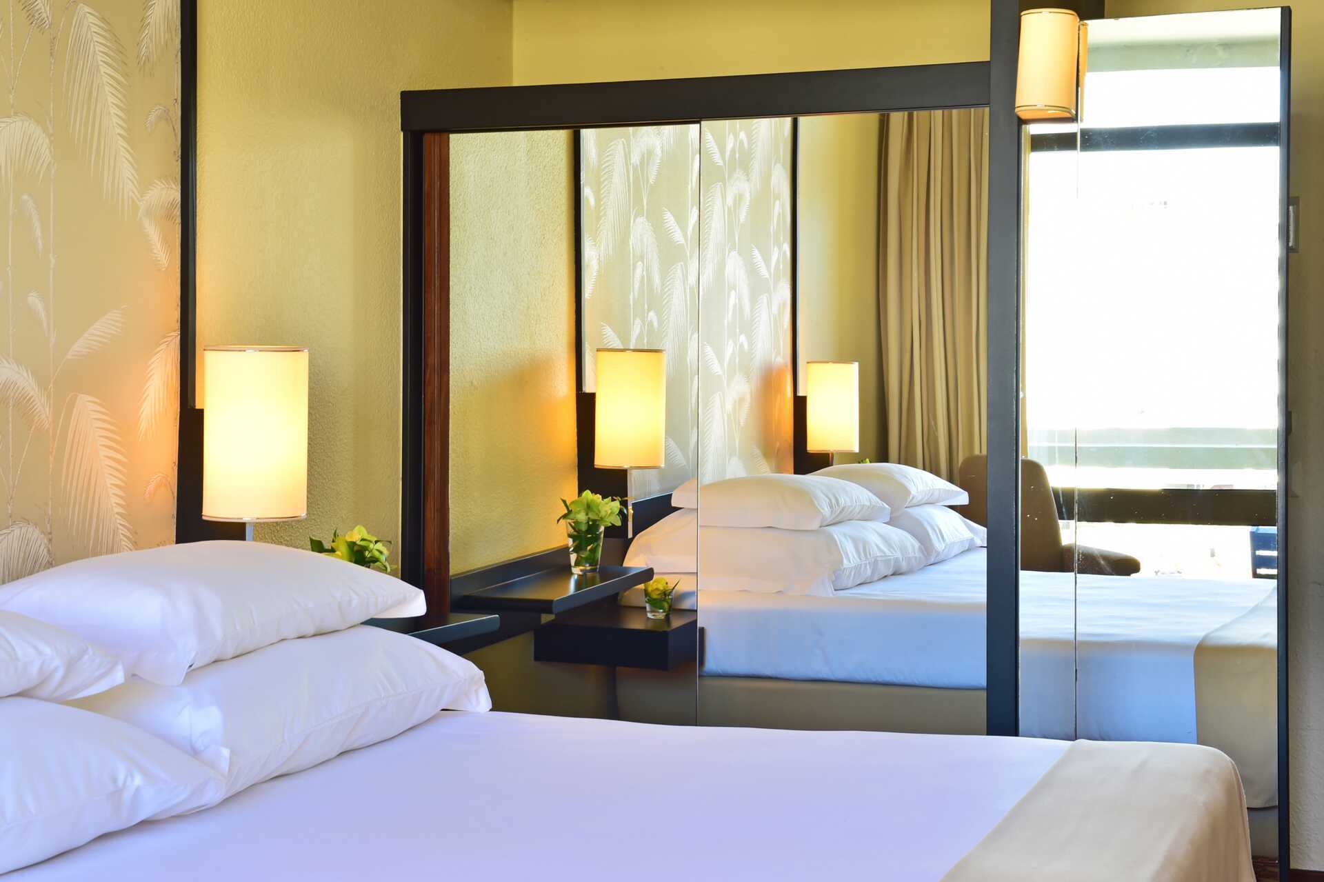 Dubbelrum med balkong, vissa med begränsat havsutsikt och vissa med utsikt (mot trädgården). En dubbelsäng eller två enkelsängar. Möjlighet till extrabädd i enkelsäng eller i hopfällbar säng. Barn upp till och med 3 år sover i barnsäng. Wifi, luftkonditionering och deponering ingår. Heltäckningsmatta. Minibar. Tv med internationella kanaler. Hårtork. Badrum med badkar eller dusch samt wc. Städning 7 ggr/vecka.