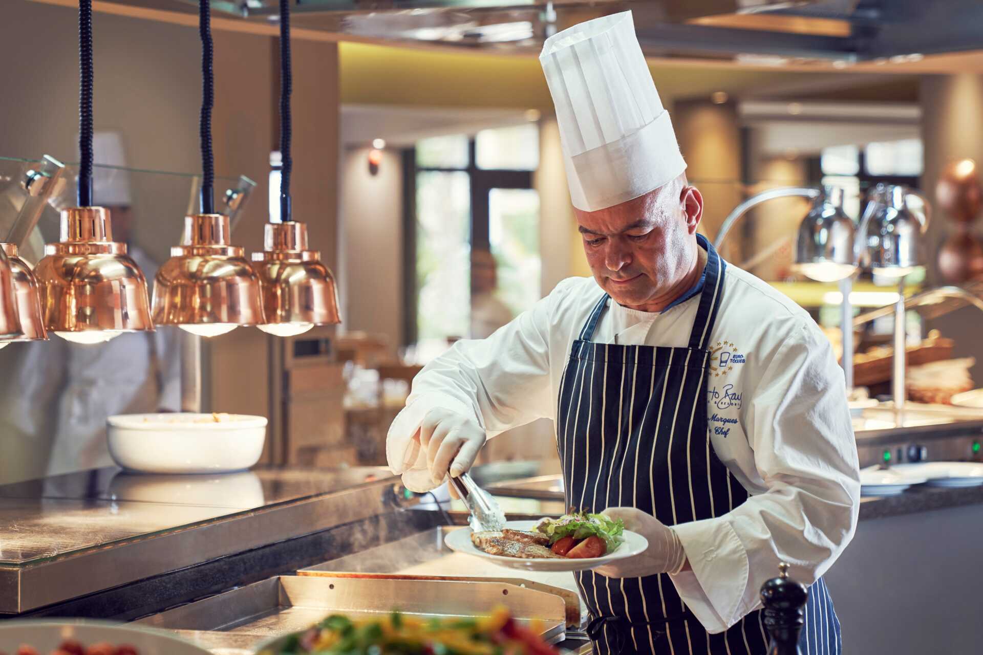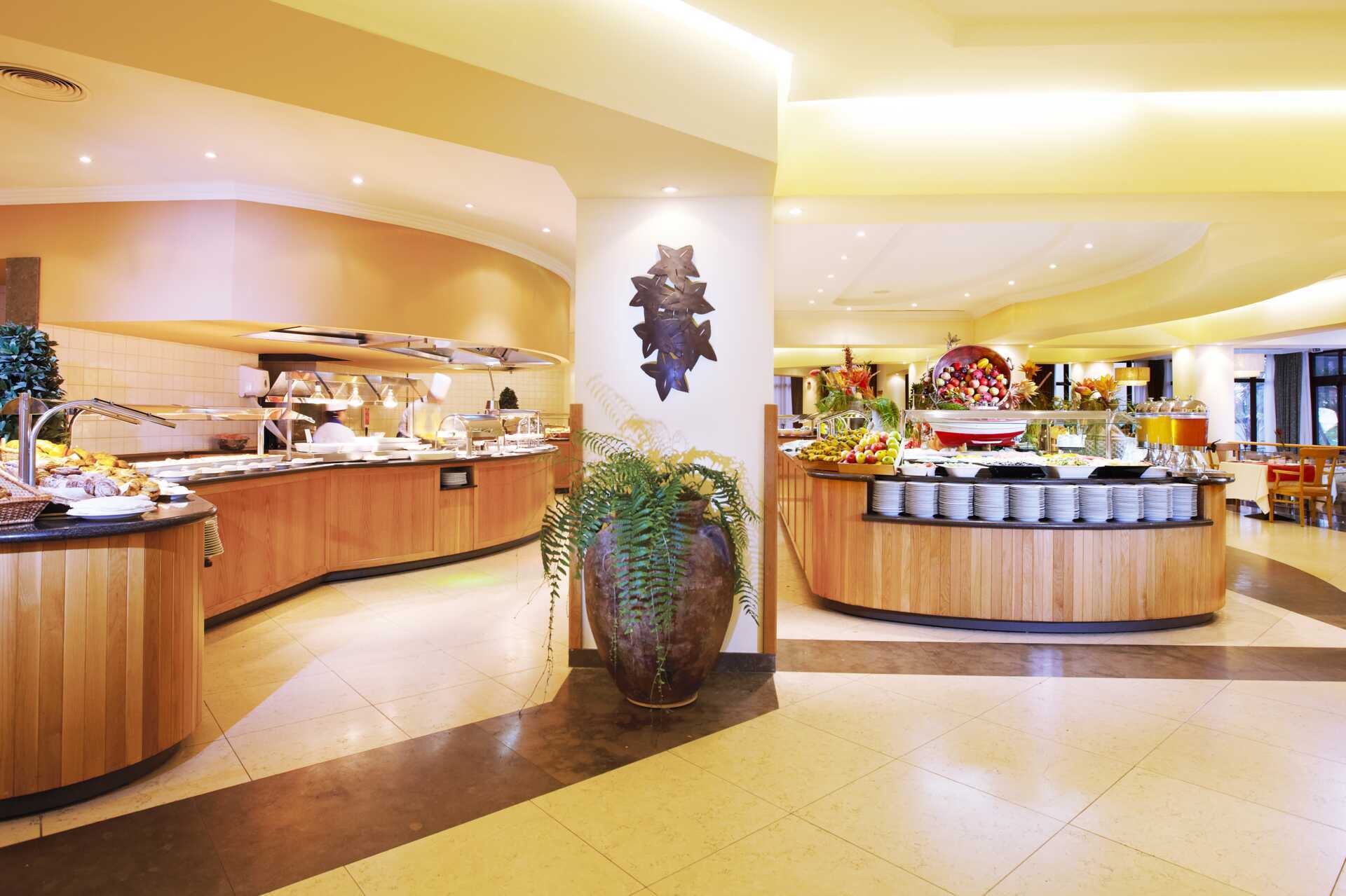 Måltiderna som ingår i halvpension intas i bufférestaurangen Atlântida. Du kan även äta frukost i à la carte-restaurangen Alfama. Vill du pröva de andra restaurangerna inom resorten gör du en bordsreservation i receptionen och får en voucher värd 17 euro att använda som delbetalning.