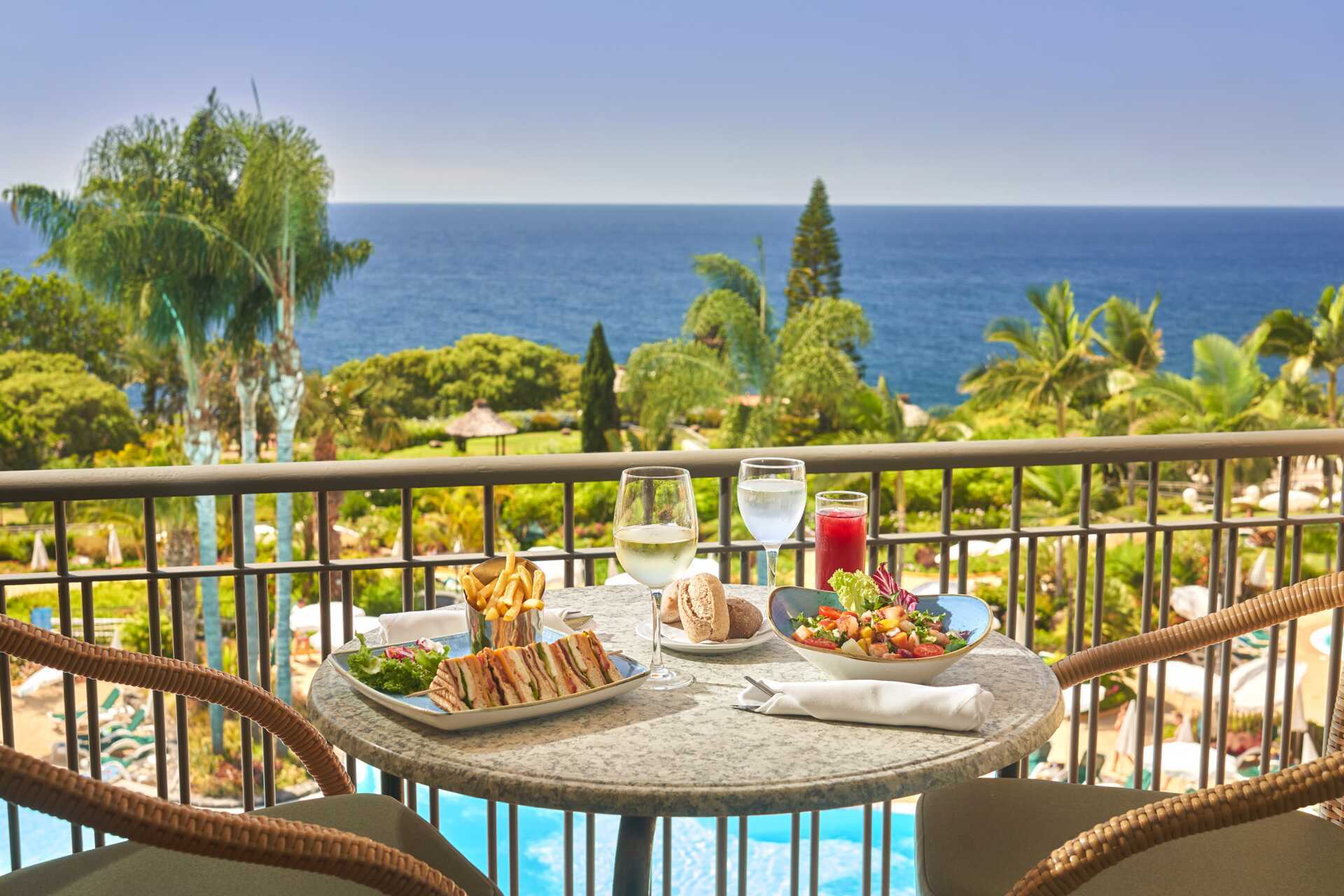 I restaurangen Atlântida serveras frukost- och middagsbuffé. Hotellet har också flera à la carte-restauranger. Alfama serverar frukost och middag med rätter med lokal anknytning till Madeira och Portugal. Il Basilico Madeira bjuder på det bästa från det italienska köket. I hotellets restaurang Horta kan du njuta av hälsosamma och innovativa rätter med spännande smaker. Bordsreservation och långbyxor krävs vid alla à la carte-restauranger. I Portofino Bar kan du ta del av Happy Hour mellan kl. 17.00 och 18.00 varje dag, dessutom bjuds på underhållning med levande musik varje kväll. Där serveras också en omtyckt Afternoon Tea och här du kan njuta av scones, snittar och "petit four".