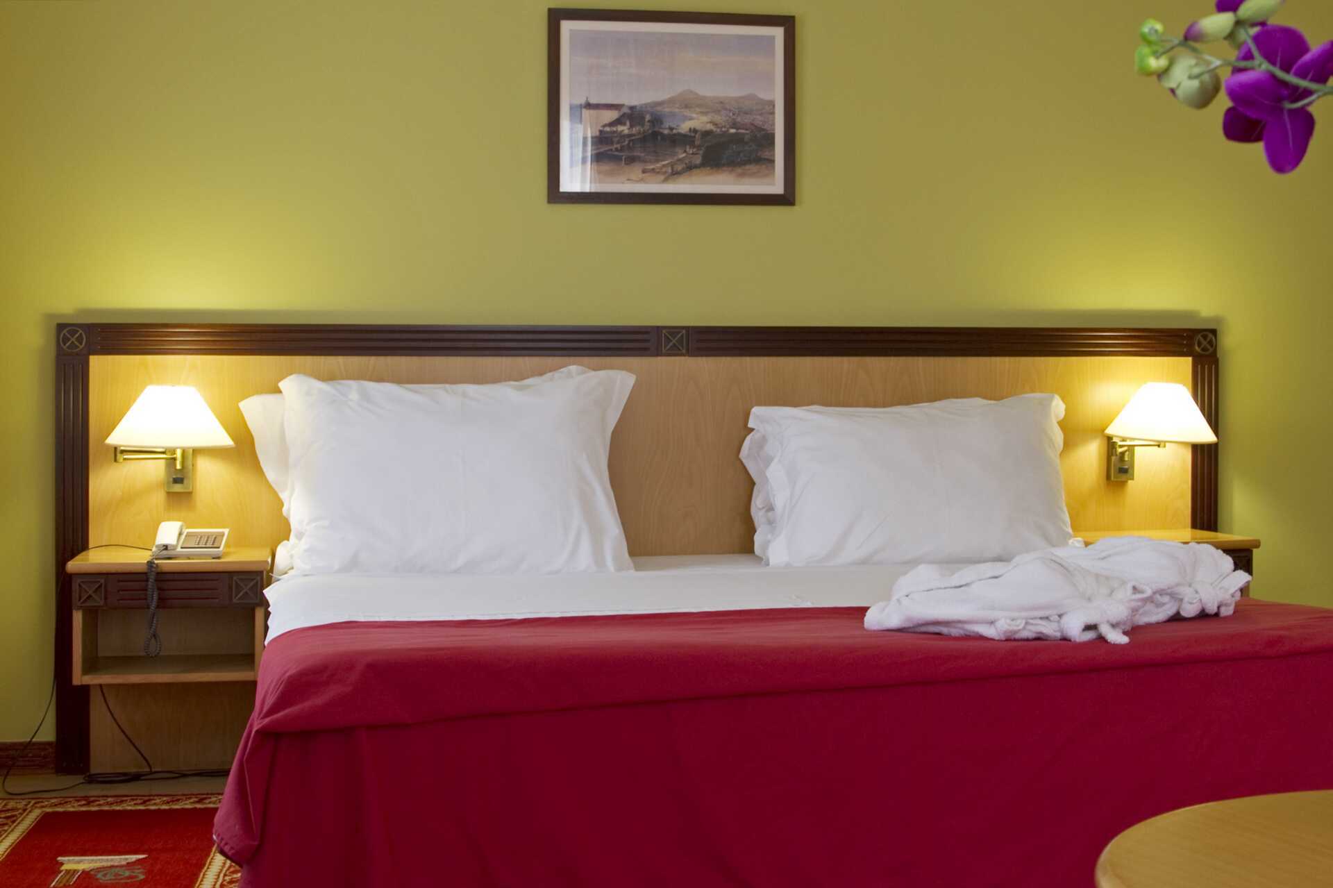 Dubbelrum med balkong, vissa med havsutsikt. Två enkelsängar. Möjlighet till extrabädd i enkelsäng. Wifi, luftkonditionering och deponering ingår. Kylskåp. Tv med internationella kanaler. Hårtork. Badrum med badkar och wc. Städning 7 ggr/vecka. Barn under två år räknas in i maxantalet personer i rummet.
