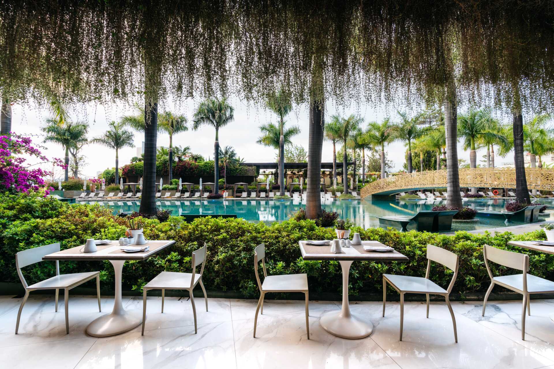 Frukostbuffén serveras i restaurangen Hibiscus och middagsbuffén i restaurang Orchidea med internationella och lokala rätter. Det finns även flera à la carte-restauranger som serverar brunch, lunch och middag med allt från medelhavsrätter och lokala rätter till det bästa från de asiatiska köken. Hotellets Sky Bar Galáxia Skyfood serverar dryck från lunch till midnatt och här kan du även äta i restaurangen på kvällarna. Afternoon tea serveras dagligen. Bordsreservation krävs i à la carte-restaurangerna. Vårdad klädsel, långbyxor för män. Hotellet har flera barer, bland annat en poolbar, en bar i lobbyn och en bar med underhållning.