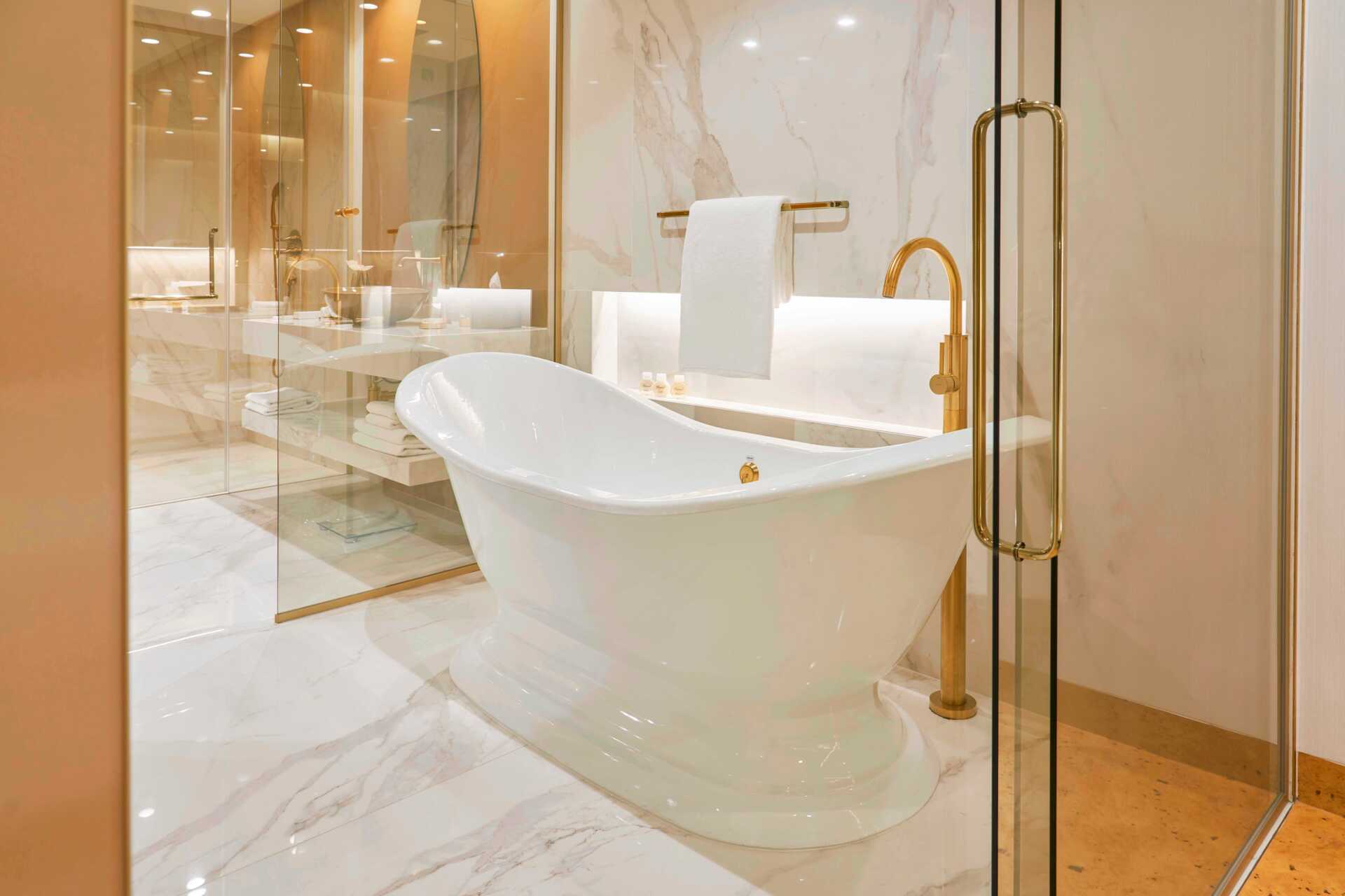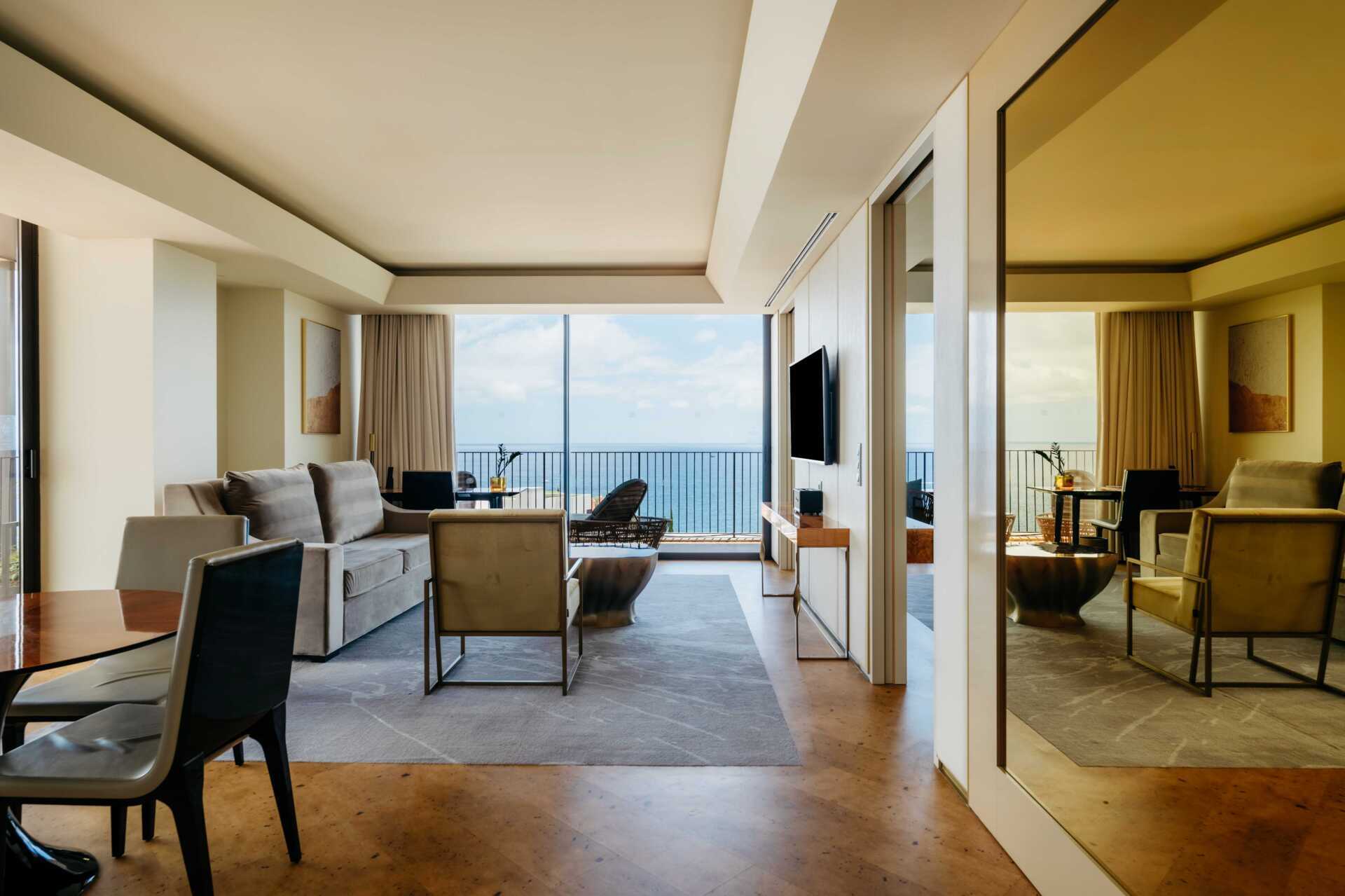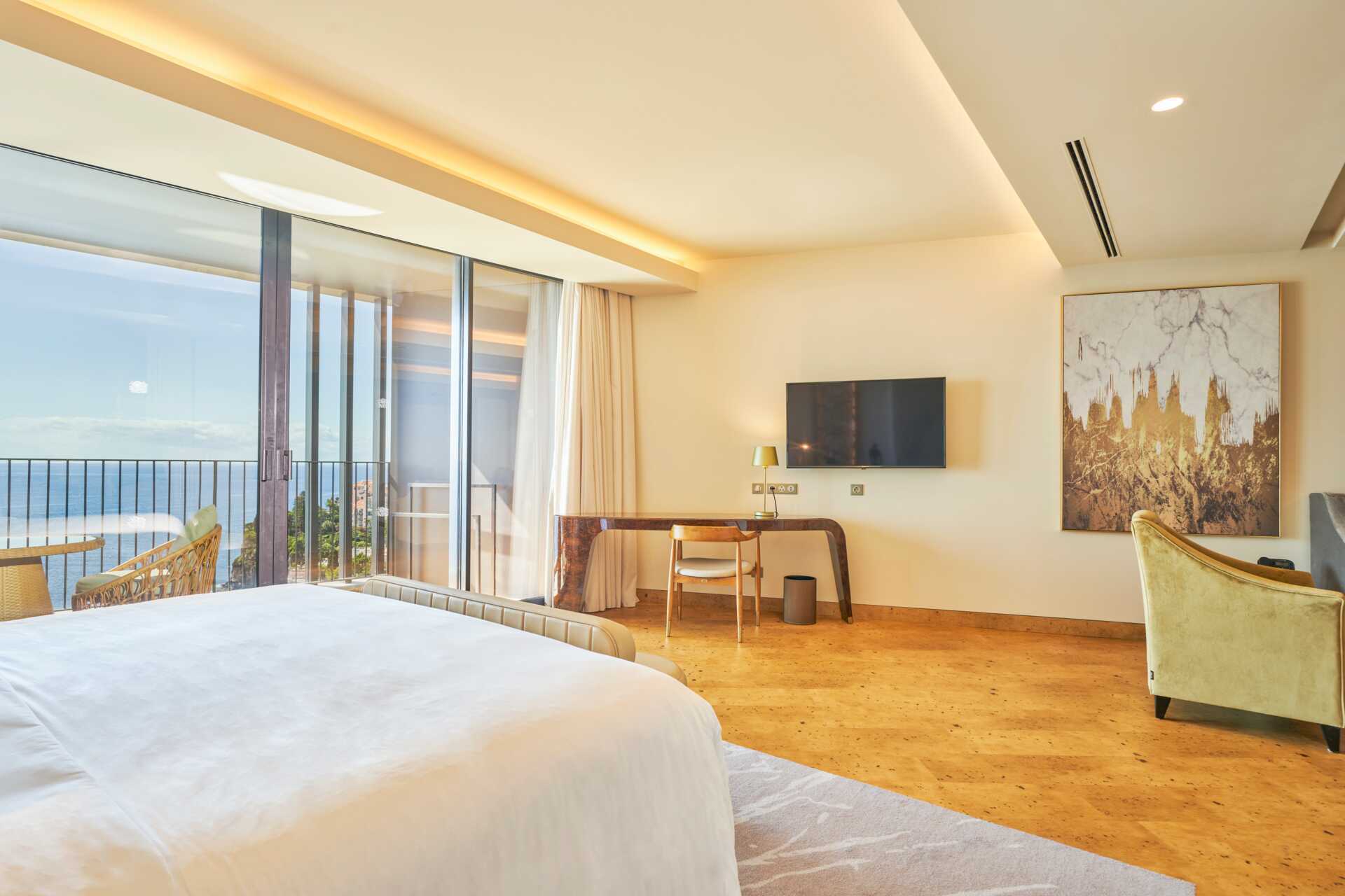 Svit med balkong och havsutsikt. Sviten består av ett sovrum och ett vardagsrum med skjutdörrar samt soffa och matplats. En dubbelsäng eller två enkelsängar. Möjlighet till extrabädd i bäddsoffa. Kuddmeny. Wifi, luftkonditionering och deponering ingår. Minibar. Vattenkokare samt kaffe och te. Nespressomaskin, kapslar ingår och fylls på varje dag. Tv med internationella kanaler. Strykjärn och strykbräda. Badrockar och tofflor. Hårtork. Badrummet består av en del med badkar och dusch, en del med två tvättställ samt en del med separat dusch och separat wc. Städning 7 ggr/vecka.