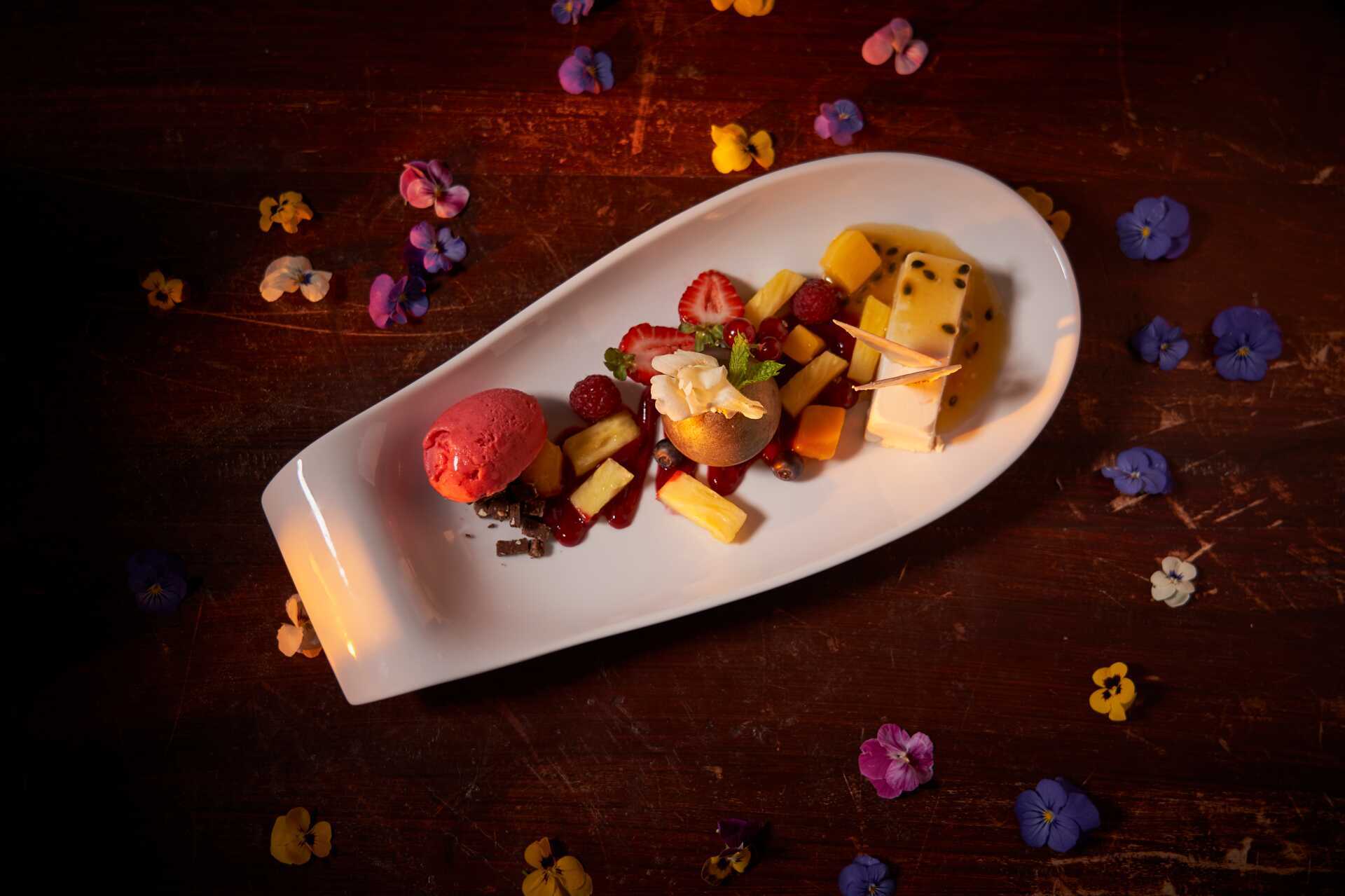Måltiderna som ingår i halvpensionen intas i bufférestaurangen. Du kan också äta frukost i à la carte-restaurangen Alfama Restaurant. Vill du äta middag i någon av resortens övriga restauranger gör du en bordsreservation i receptionen och du får en voucher värd 17 euro att använd som delbetalning.