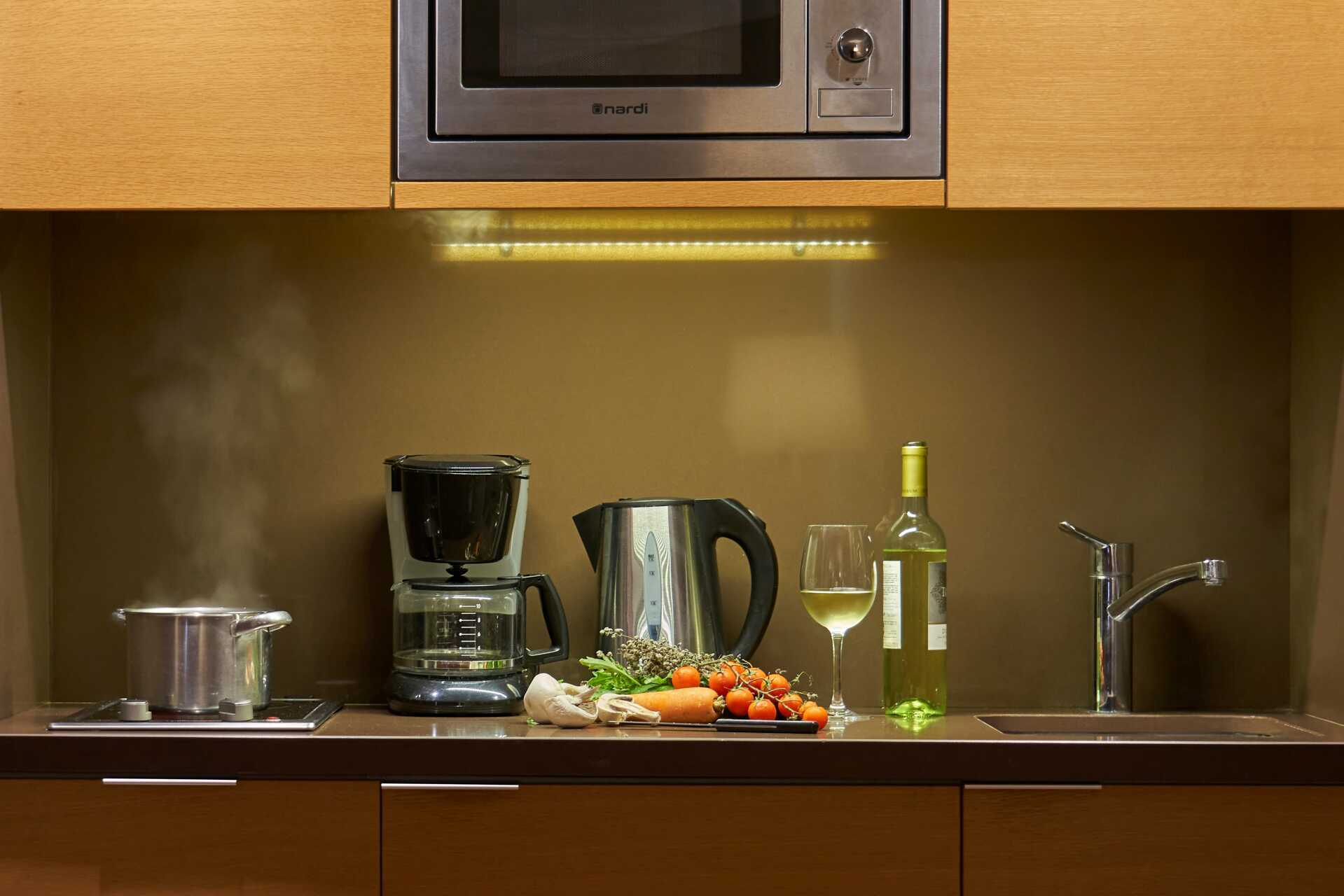 Enrumslägenhet superior med balkong och begränsad havsutsikt. Kombinerat sovrum och minikök. Två enkelsängar. Möjlighet till extrabädd i enkelsäng. Wifi, deponering och luftkonditionering ingår. Minikök med kokplattor, kylskåp med frysfack, mikrovågsugn, brödrost, vattenkokare med kaffe och te och enkel köksutrustning. Tv med internationella kanaler. Heltäckningsmatta. Badrockar och tofflor. Hårtork. Badrum med badkar och wc. Städning 7 ggr/vecka. Barn under två år räknas in i max antal personer i lägenheten.