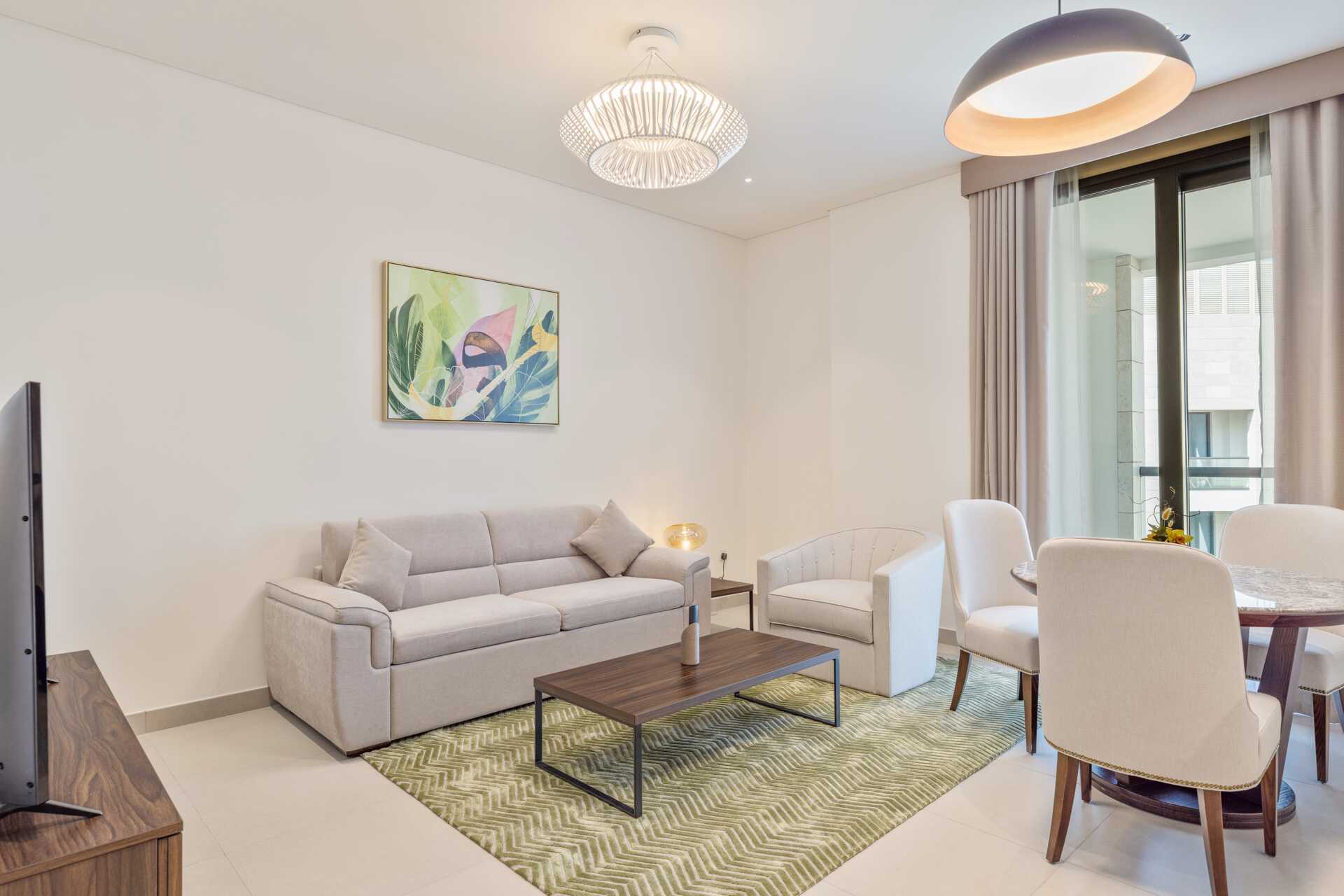 Tvårumslägenhet med balkong. Sovrum samt kombinerat vardagsrum med soffgrupp och minikök och matplats. En dubbelsäng eller två enkelsängar. Möjlighet till extrabäddar i bäddsoffa. Wifi, luftkonditionering och deponering ingår. Minikök med kylskåp och frys, kokplattor, mikrovågsugn, vattenkokare, diskmaskin och enkel köksutrustning samt tvättmaskin. Tv med internationella kanaler i sovrummet och i vardagsrummet. Strykjärn och strykbräda. Hårtork. Badrum med dusch och wc samt en separat toalett. Städning 7 ggr/vecka.