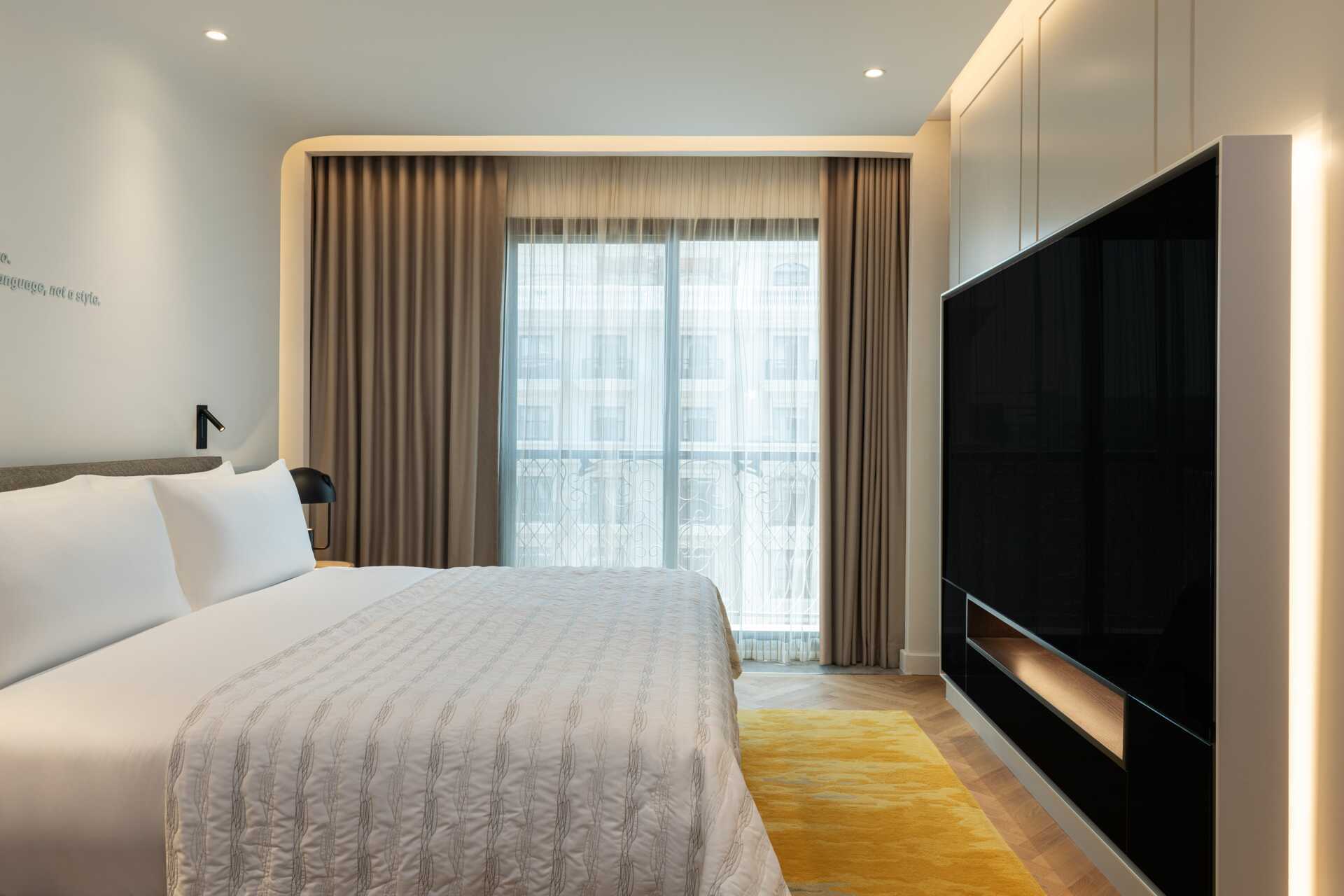 Deluxerum med balkong. En dubbelsäng eller två enkelsängar. Wifi, luftkonditionering och deponering ingår. Heltäckningsmatta. Kylskåp. Vattenkokare samt kaffe och te. Tv med internationella kanaler. Strykjärn och strykbräda. Badrockar och tofflor. Hårtork. Badrum med badkar, två handfat, dusch och wc. Städning 7 ggr/vecka.