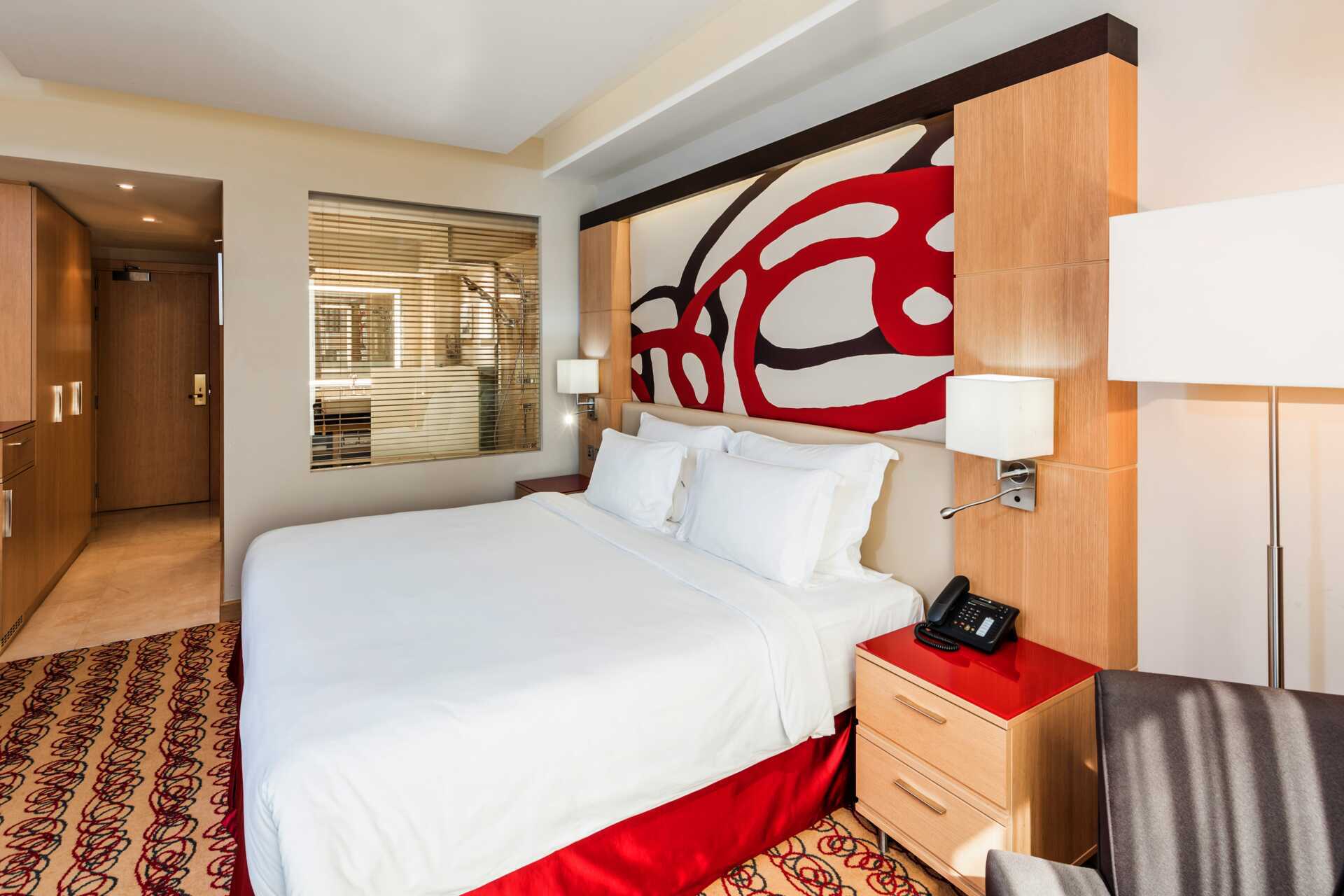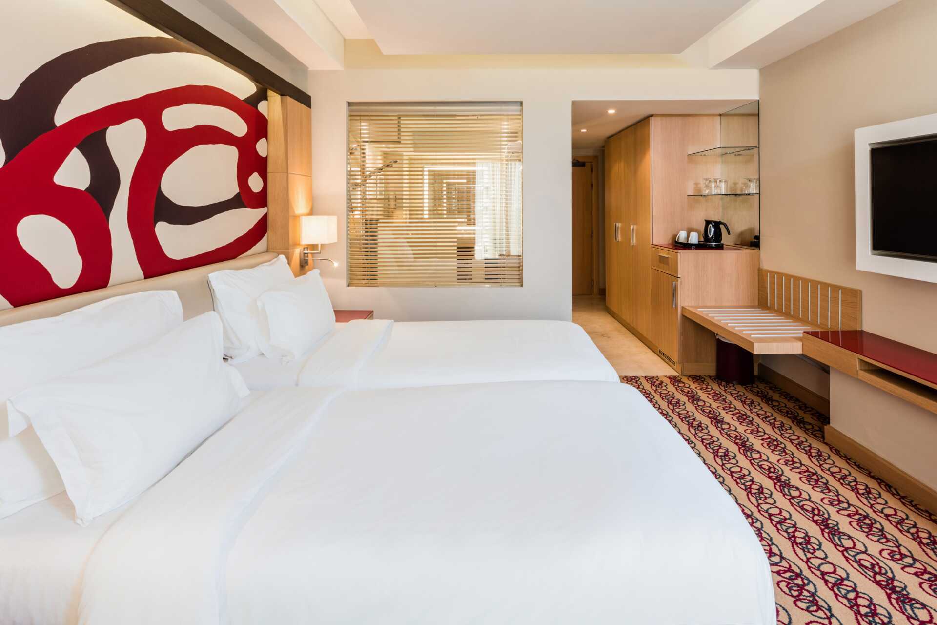 Dubbelrum, utan uteplats. En dubbelsäng eller två enkelsängar. Kuddmeny. Wifi, luftkonditionering och deponering ingår. Heltäckningsmatta. Kylskåp. Vattenkokare samt kaffe och te. Tv med internationella kanaler. Strykjärn och strykbräda. Hårtork. Badrum med badkar och wc. Städning 7 ggr/vecka.