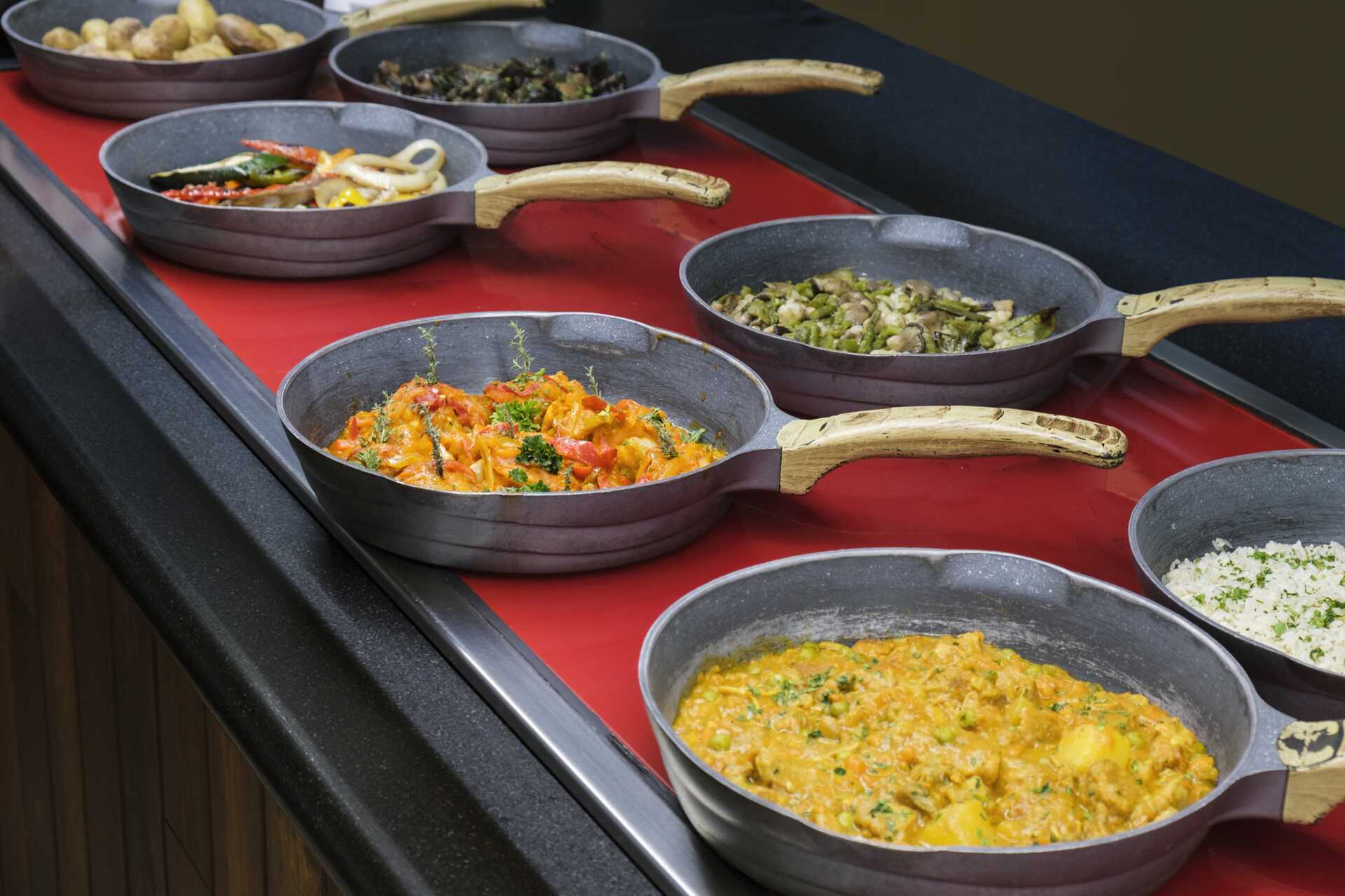 Med vacker utsikt över stranden Levante och havet kan du njuta av frukost, lunch och middag i hotellets bufférestaurang The Kitchen. Veganska, vegetariska och glutenfria alternativ finns. I hotellets poolbar serveras både kylda drycker och het musik från en DJ - öppet från förmiddag till midnatt.