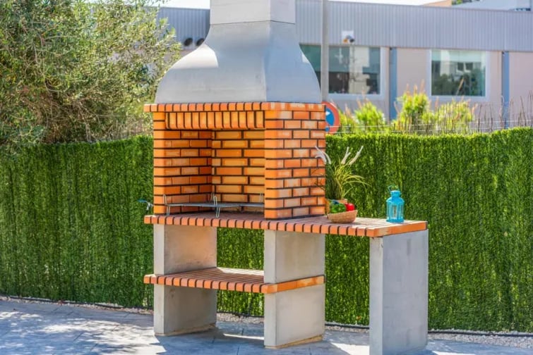 Solstolar, Täckt terrass, Matsal utomhus, Matmöjligheter utomhus, Matplats, Öppen terrass, Grill, Tegelgrill