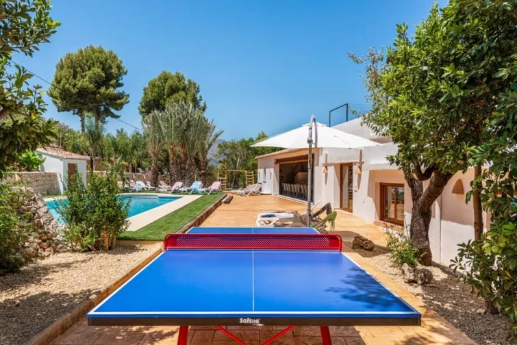 Ursprungligen en bondgård med vinmakare, har renoveringen respekterat byggnadens ursprungliga charm men smakfullt blandat nya moderna bekväma möbler. De tjocka sandstensväggarna håller denna finca sval under varma sommardagar och nätter, men erbjuder även luftkonditionering i delar. Den smarta designen har arrangerats så att alla har sitt eget utrymme men sedan kan samlas i det stora gemensamma utrymmet för roliga stunder.