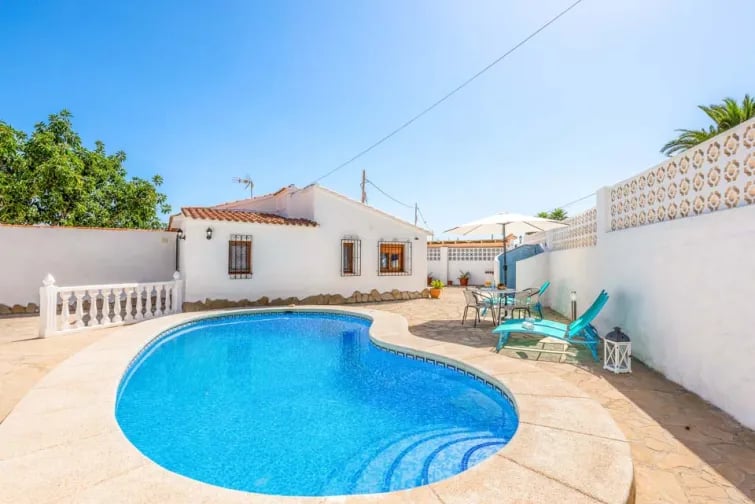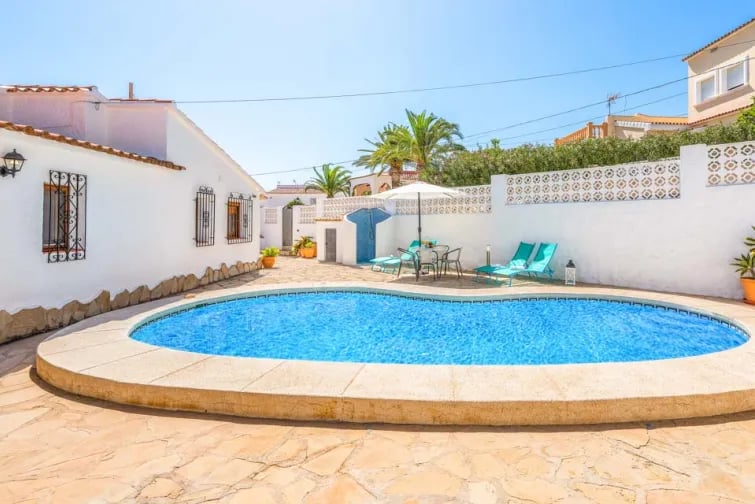 Villa Maeva är en charmig fristående fastighet med tre sovrum belägen i en urbanisation i utkanten av Calpe och är perfekt för familjer som reser eller grupper av vänner. Lägenheten är fördelad på ett plan och har ett välutrustat kök och ett bekvämt vardagsrum med matplats och dörr som leder ut till terrassen och grillplatsen. Ett sovrum med dubbelsäng och ett sovrum med två enkelsängar har eget duschrum och eget badrum, medan ett sovrum med dubbelsäng har egen utgång utåt med toalett. Vardagsrummet har luftkonditionering och sovrummen har takfläktar för din komfort. WiFi finns också tillgängligt. Tillbaka ut på terrassen finns ytterligare matalternativ med en tegelgrill och brödugn för dem som inte vill äta utomhus. På andra sidan av villan finns din privata pool med stegtillgång i flera dagar. För de som vill utforska vidare ligger den livliga semesterorten Calpe med sina sandstränder bara en kort bilresa bort.