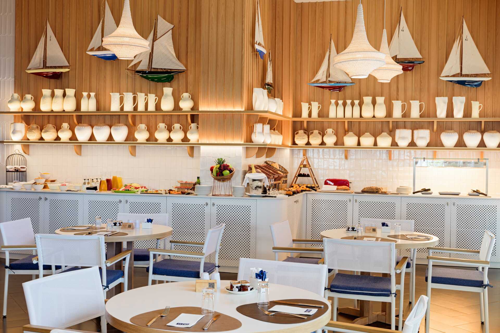 Hamburgare, smörgåsar, pizza, yoghurt och frukt i Thalassa Restaurant, kl. 11.00-19.00