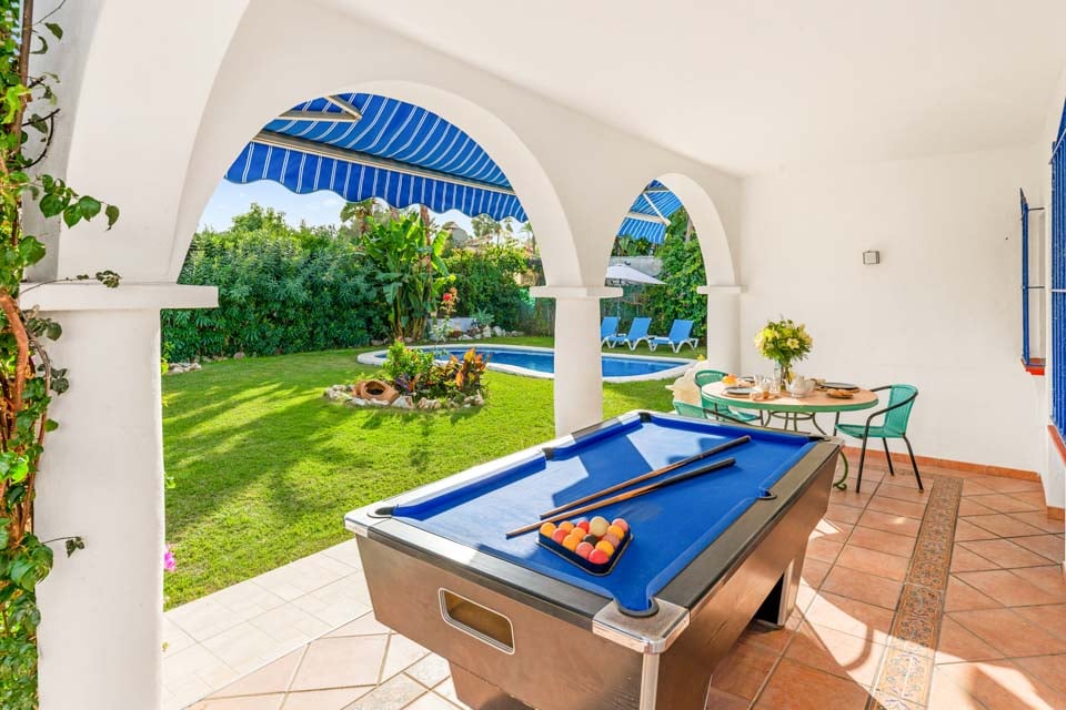 Utnyttja den rymliga trädgården som ligger bakom villan till fullo, med ett pingisbord och din alldeles egna privata pool. Börja dagen på rätt sätt med ett morgondopp när solen går upp över Alboránsjön, vilket ger dig ett pittoreskt sätt att tillbringa dina vakna timmar utan att behöva lämna villans bekvämligheter. Allt eftersom dagen fortskrider kan du hitta timmar av underhållning med bordtennis och slå dina nära och kära i många matcher för att säkra den triumferande bordstiteln.